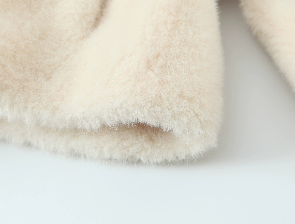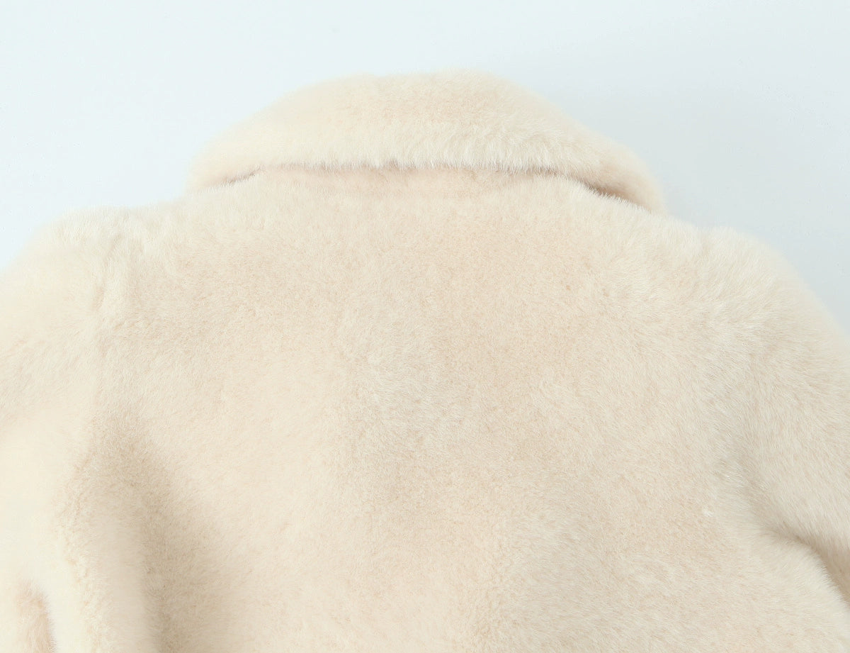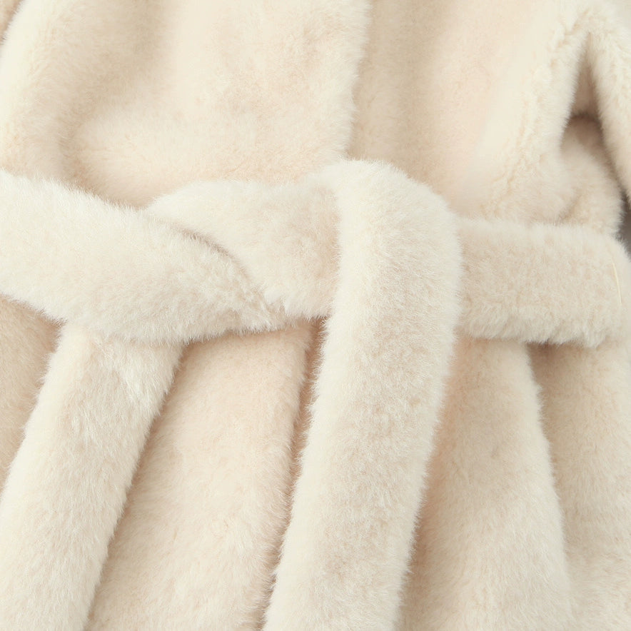 벨트가 있는 인조 모피 울 코트