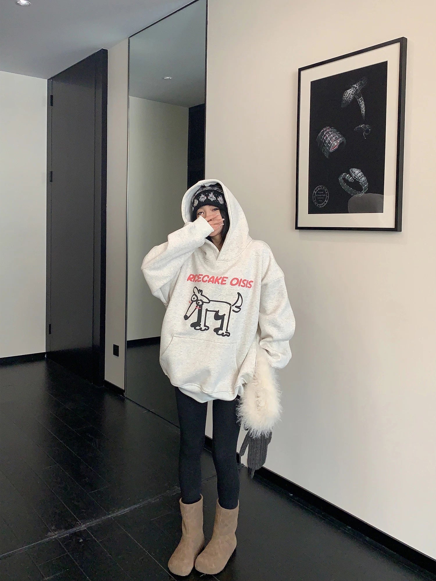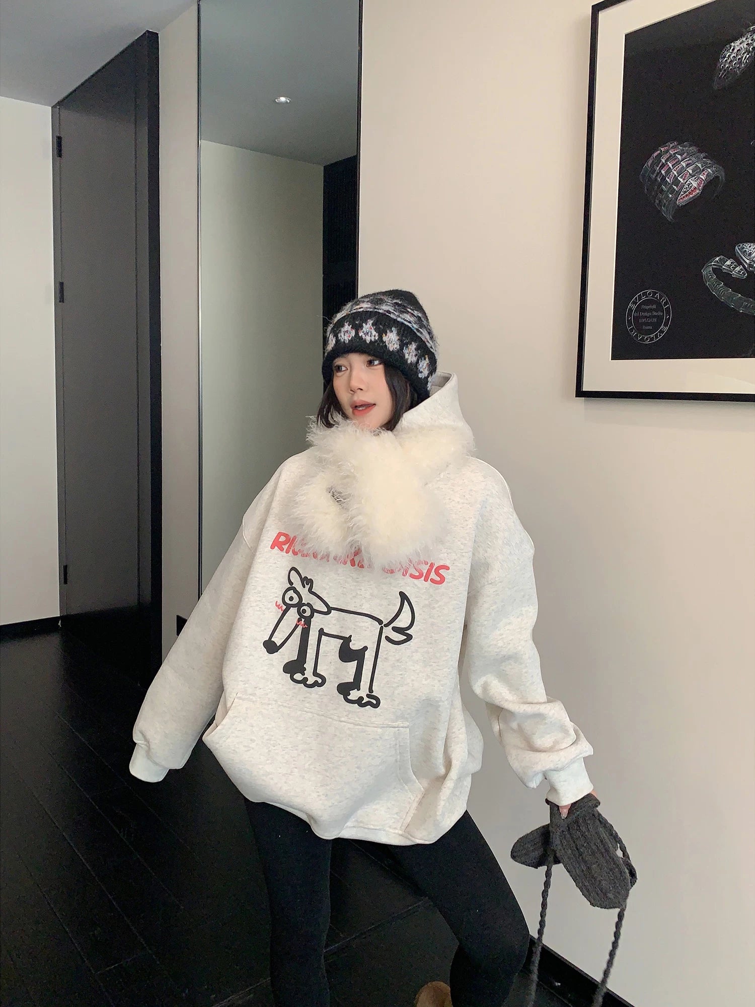 오버사이즈 만화 프린트 플리스 후디