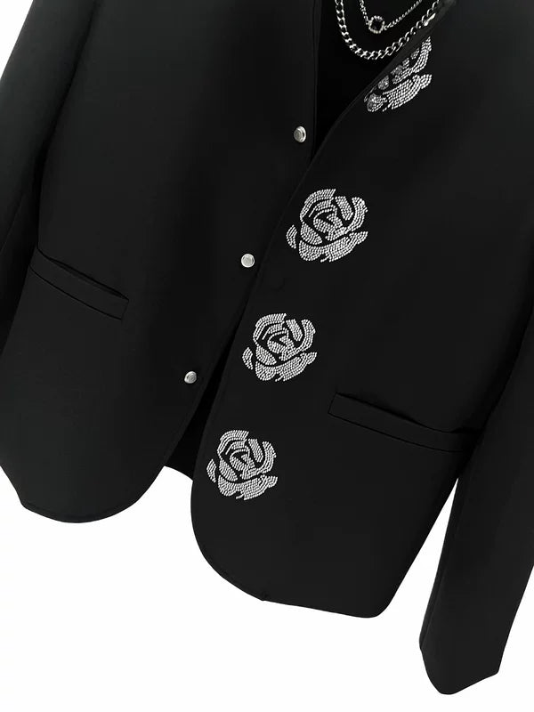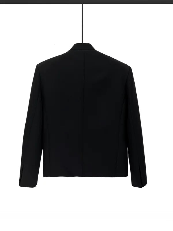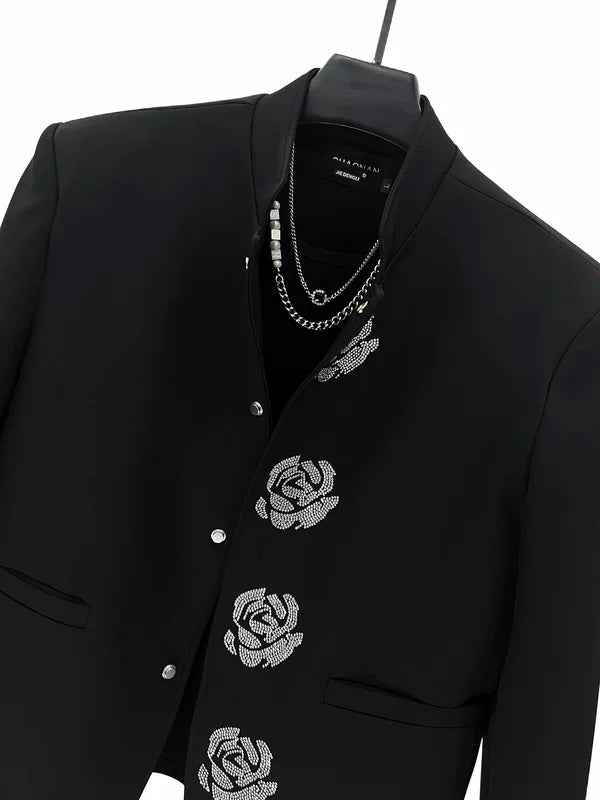 스탠드 칼라 라인스톤 장식 수트 재킷
