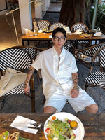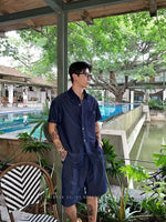 벨트가 있는 주름 아이스 실크 버뮤다 팬츠