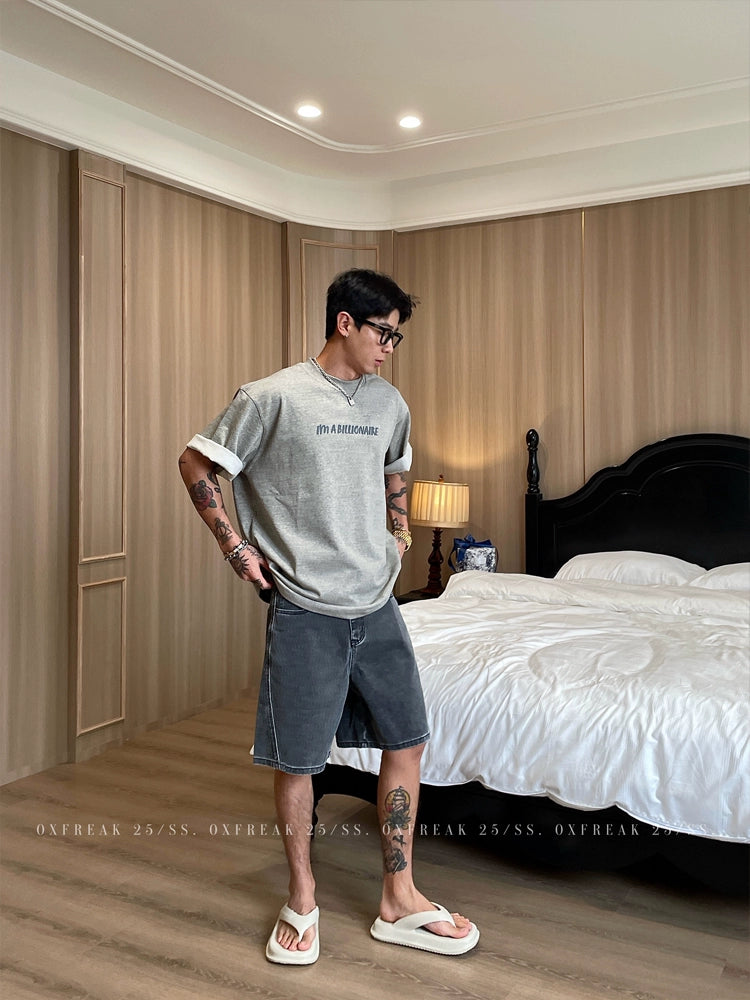 세탁된 코튼 루즈 스트레이트 데님 팬츠