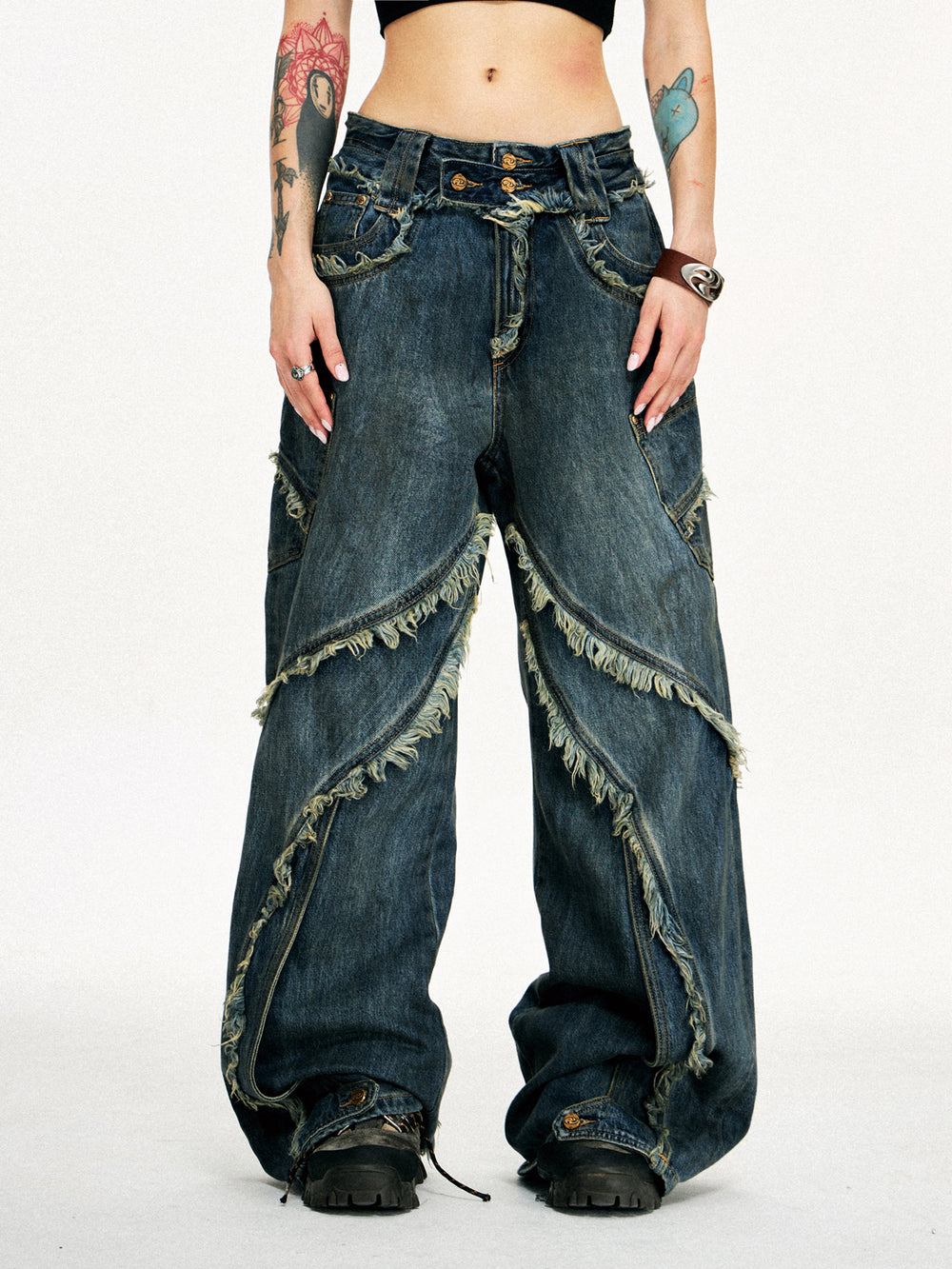 - 디자인은 약간 여유 있는 핏을 특징으로 하며, 독특한 스티칭과 디테일을 강조하여 바지의 레이어드 및 텍스처드 룩을 향상시킵니다.