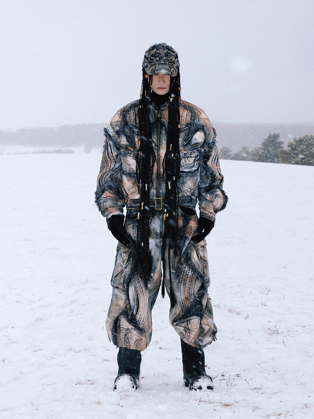 - 소매 부분의 보강된 디자인은 보호 갑옷을 닮아, 강한 움직임과 시각적 깊이를 더합니다, 거칠고 강한 느낌을 함께 제공합니다.