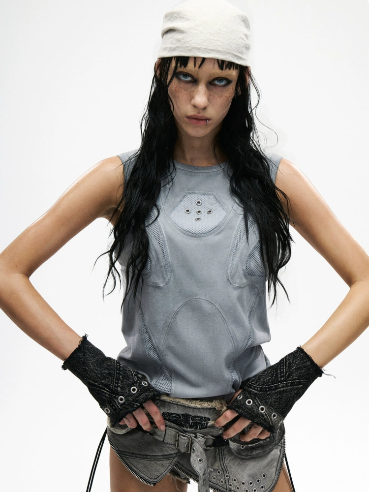 - 디자인은 슬림 핏 구조를 사용하여 몸매를 완벽하게 강조합니다. 간단한 선들이 개성을 잃지 않으면서 패션 감각을 더합니다. 패치워크 디자인의 사용은 입체적인 레이어드 시각 효과를 만들어냅니다. 의상의 구조적 그래픽은 로고 디테일과 결합되어, 독특한 브랜드 아이덴티티를 강조하고 기술적이며 미래적인 느낌을 강화합니다. 전체적인 패치워크는 몸에 꼭 맞아, 착용자에게 힘과 독특한 개성을 제공합니다.