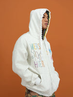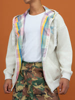 플래드 안감 지퍼 업 자수 후드티