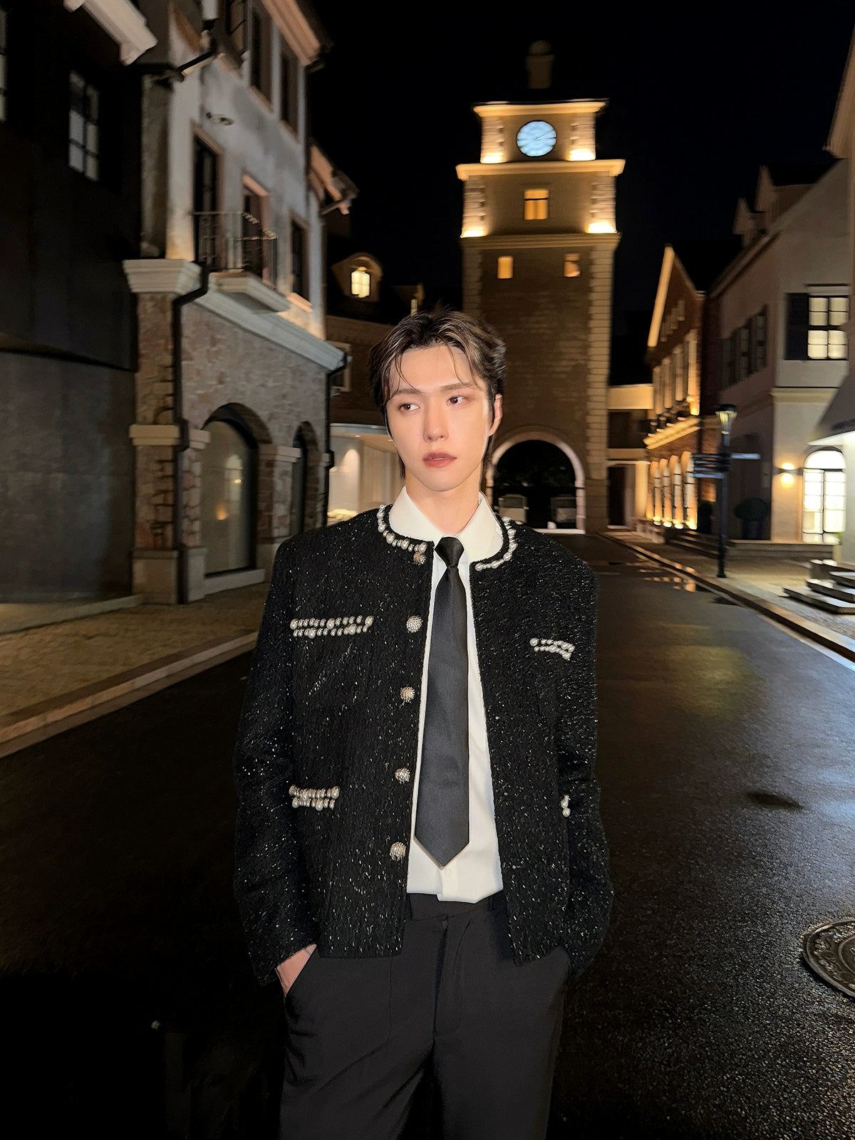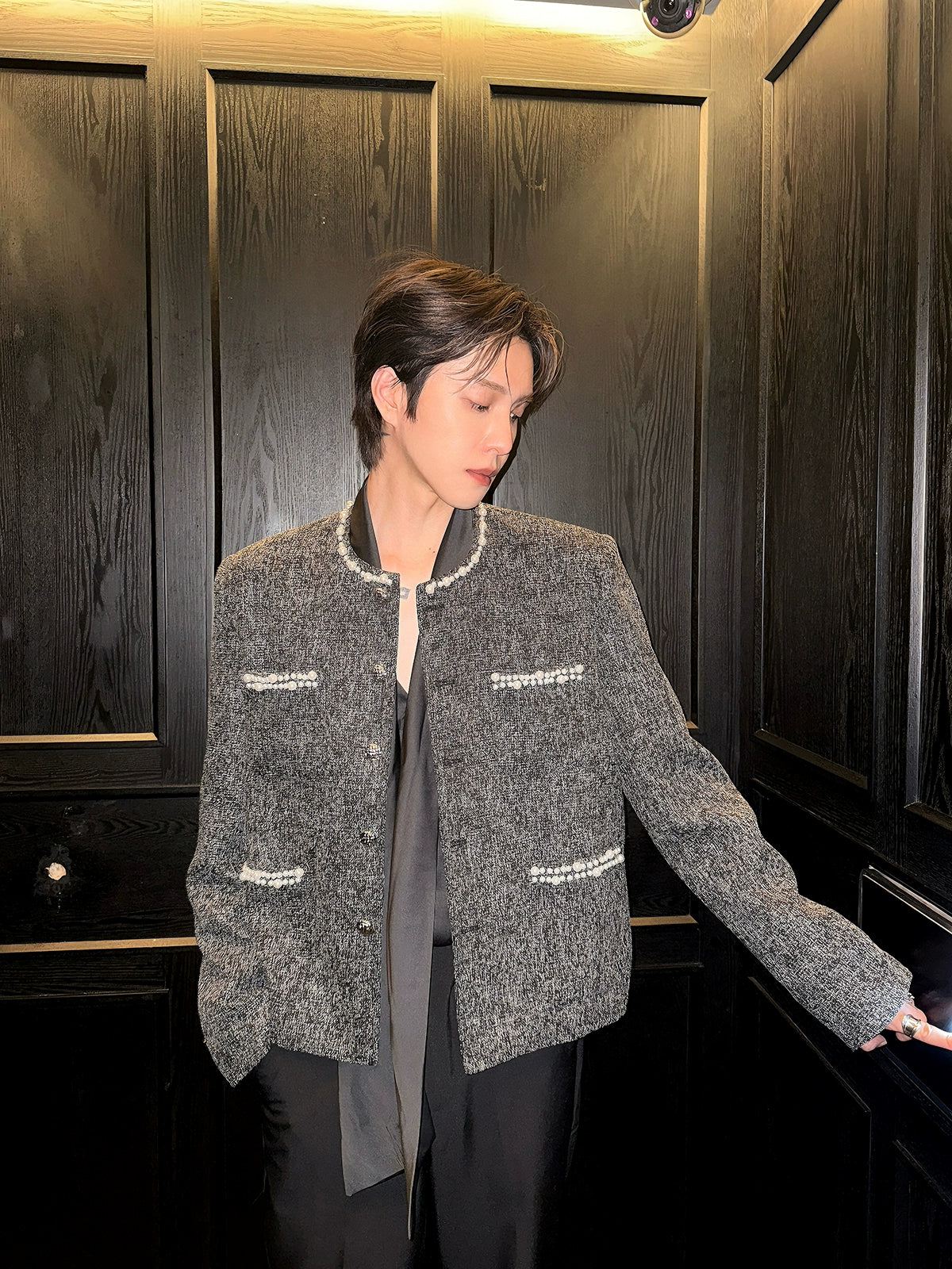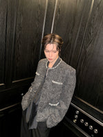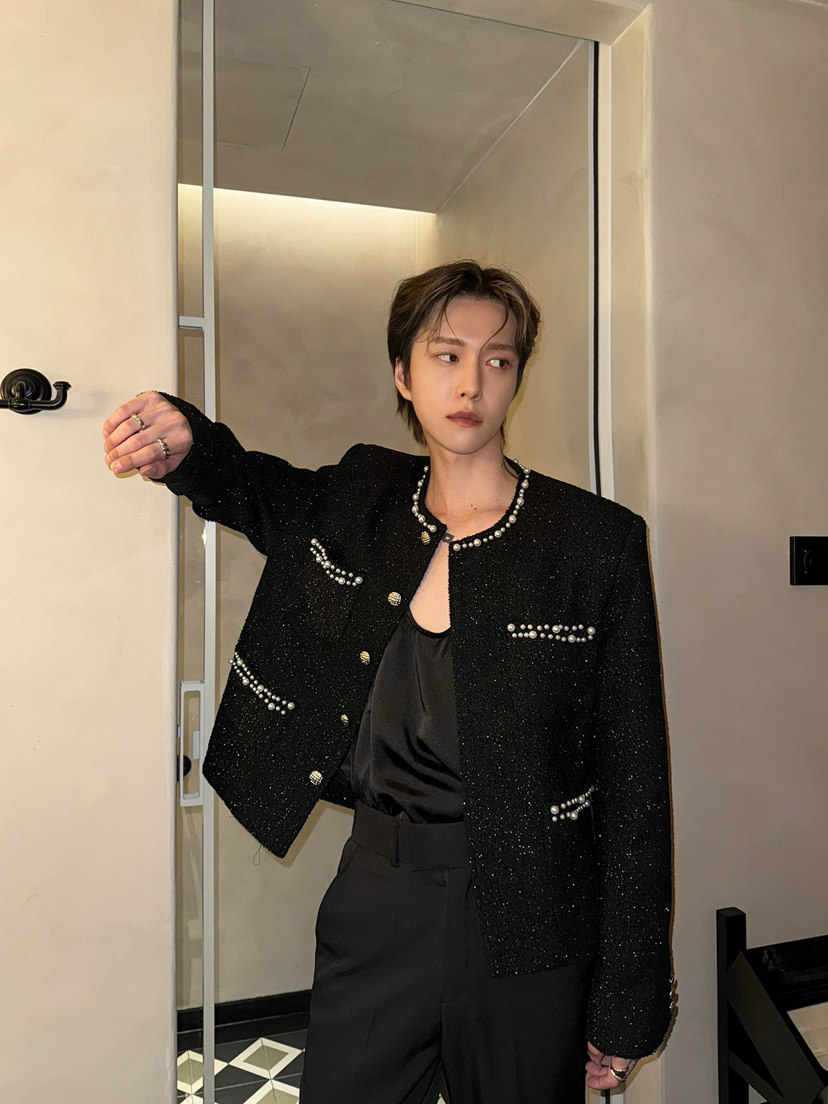 자수 장식 진주 어깨 패드 재킷