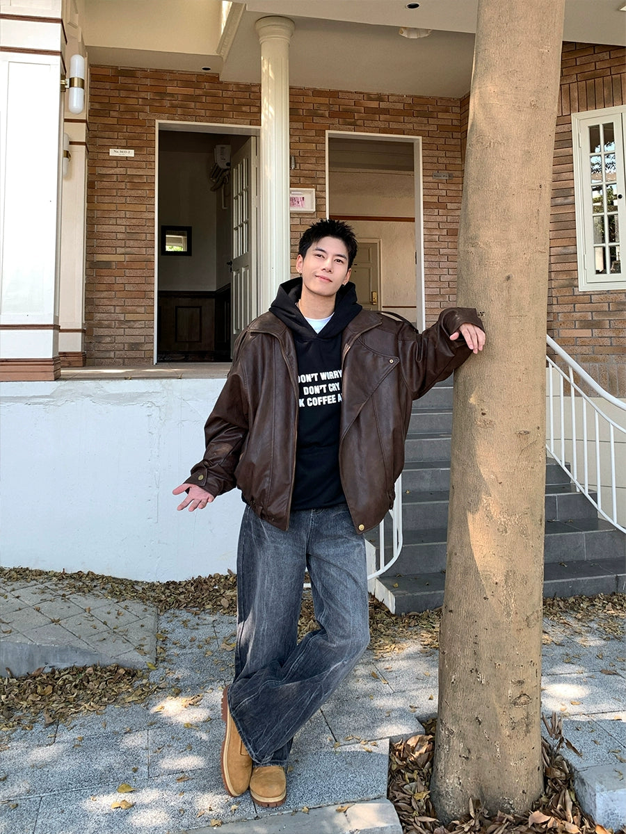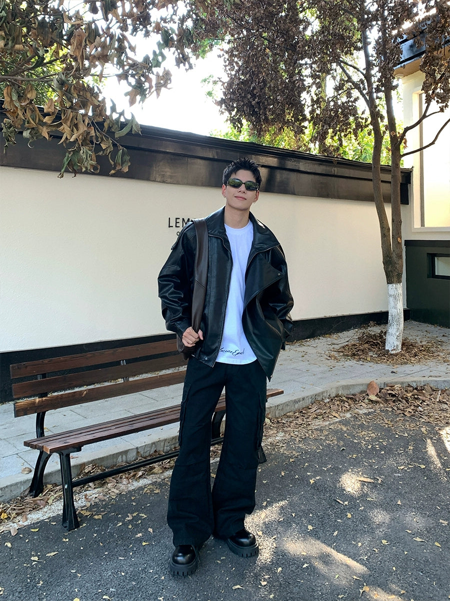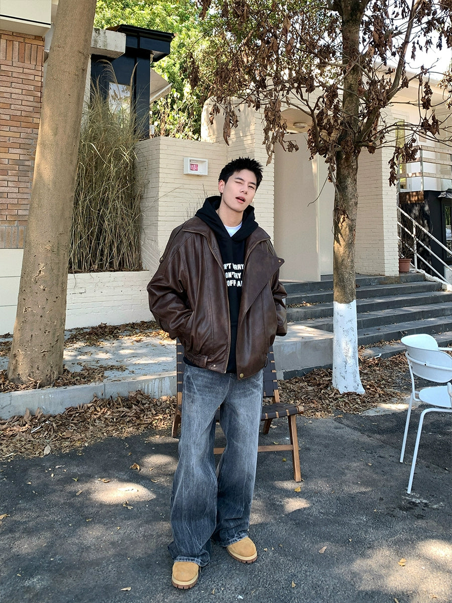 클래식 스타일 핏의 가죽 재킷