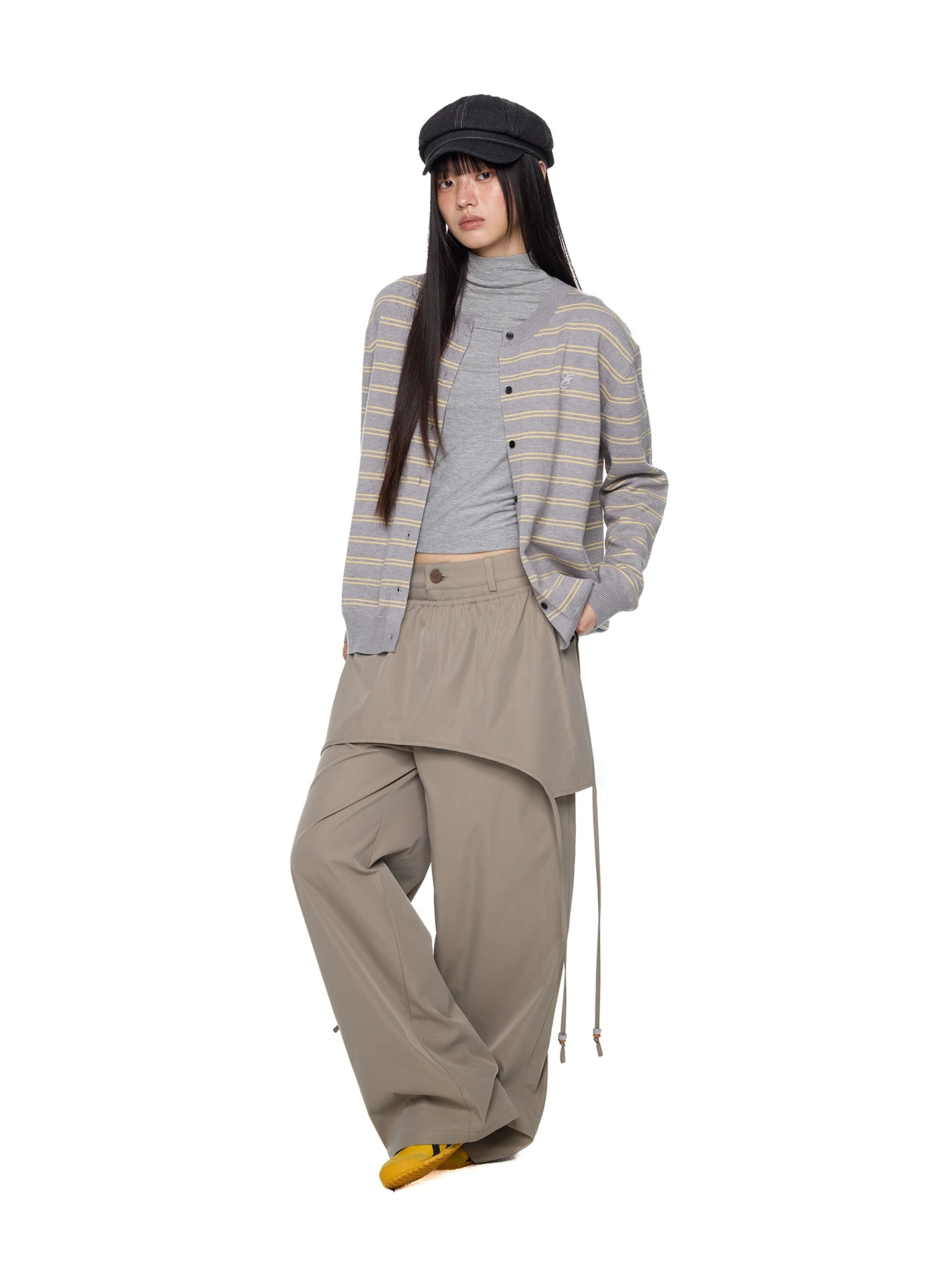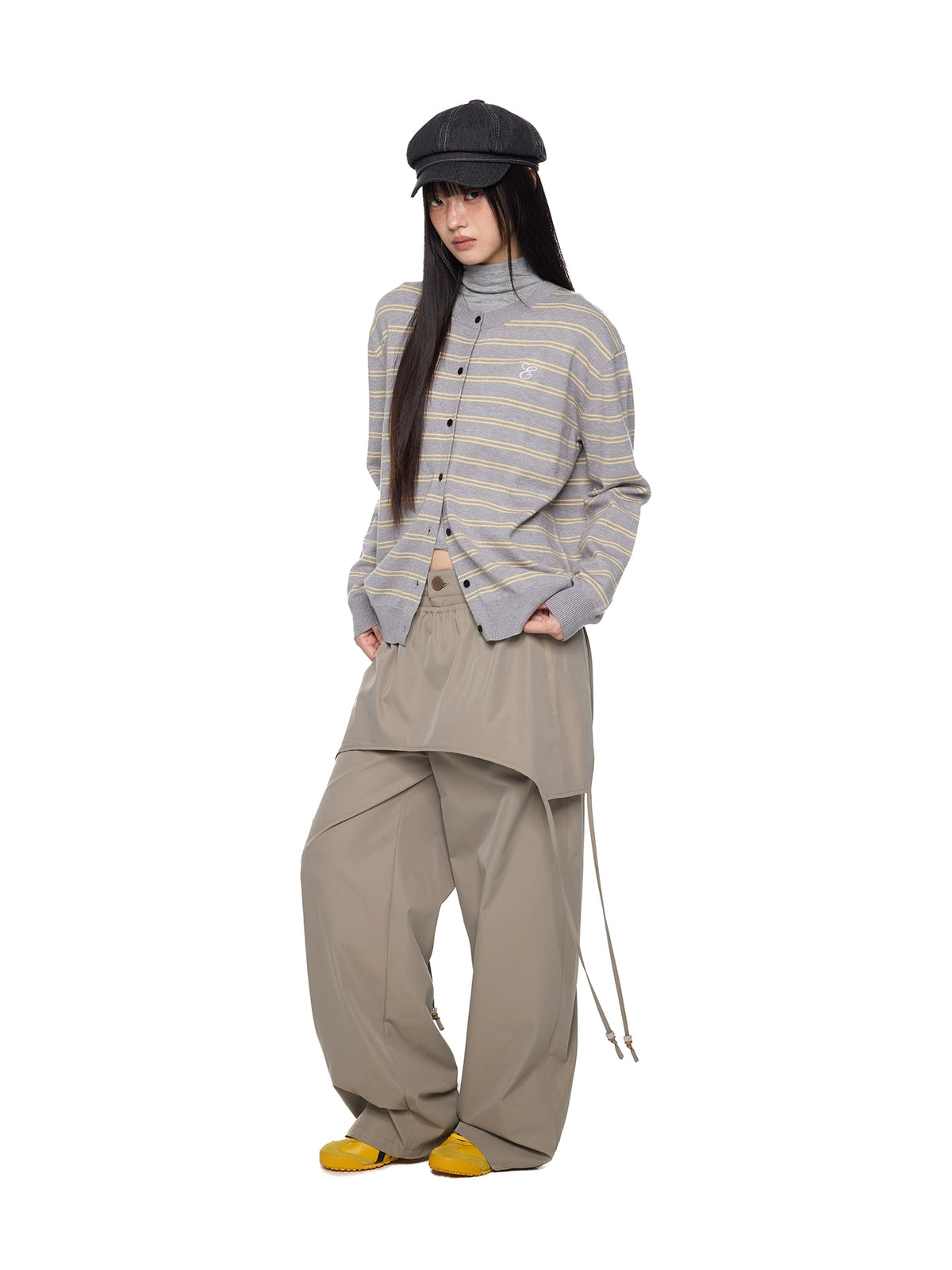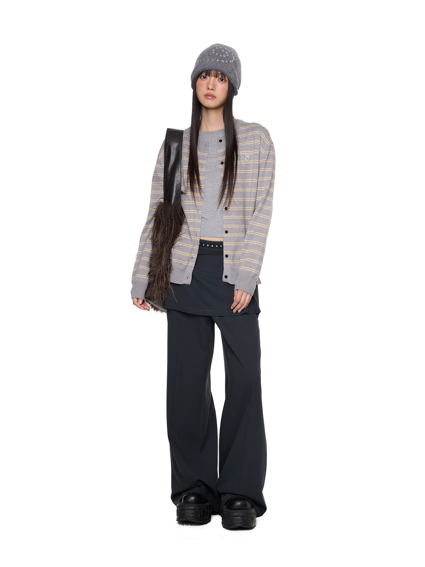 줄무늬 자수 니트 카디건 버튼 재킷