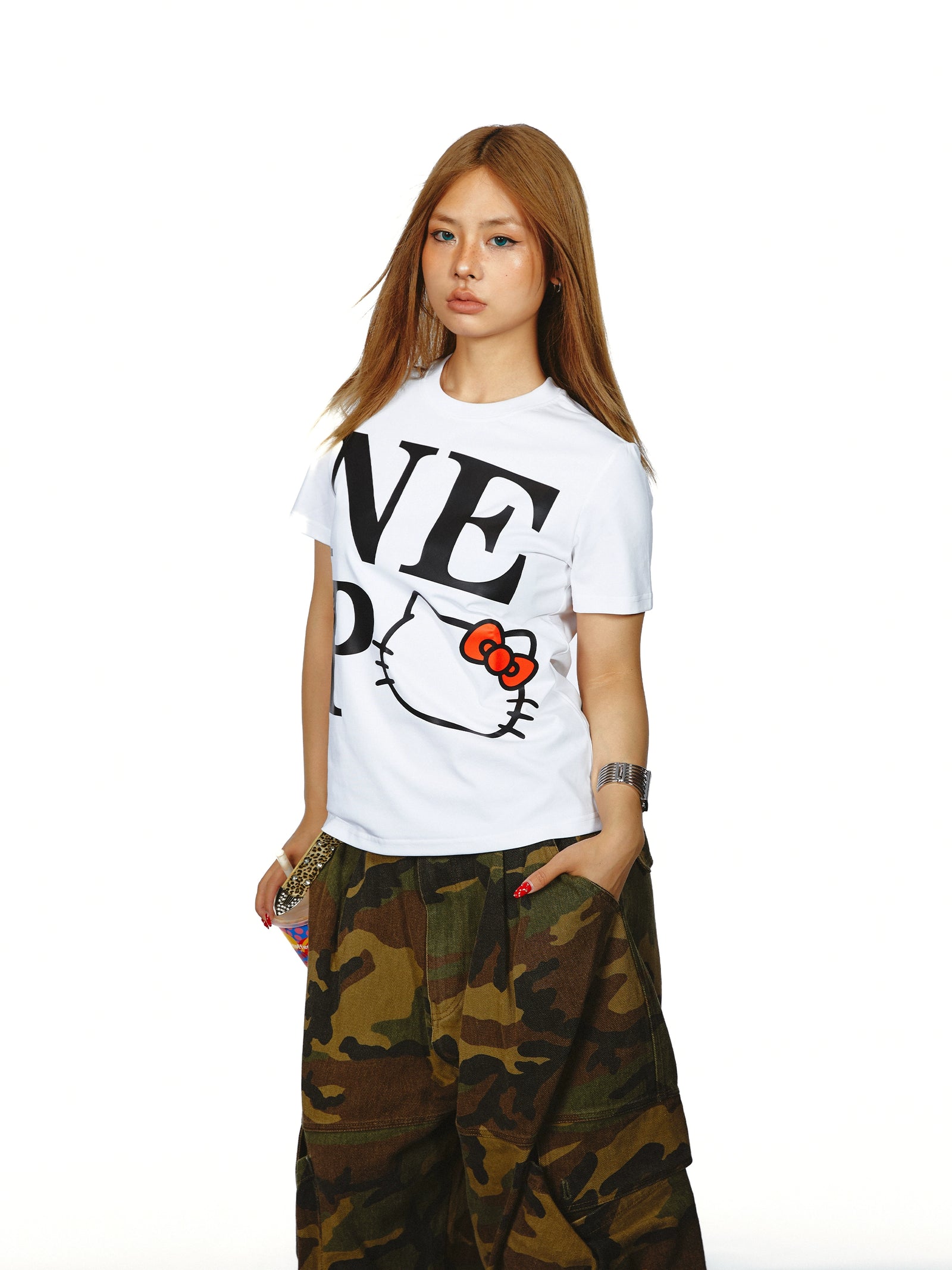 고양이 그래픽 반팔 슬림핏 티셔츠