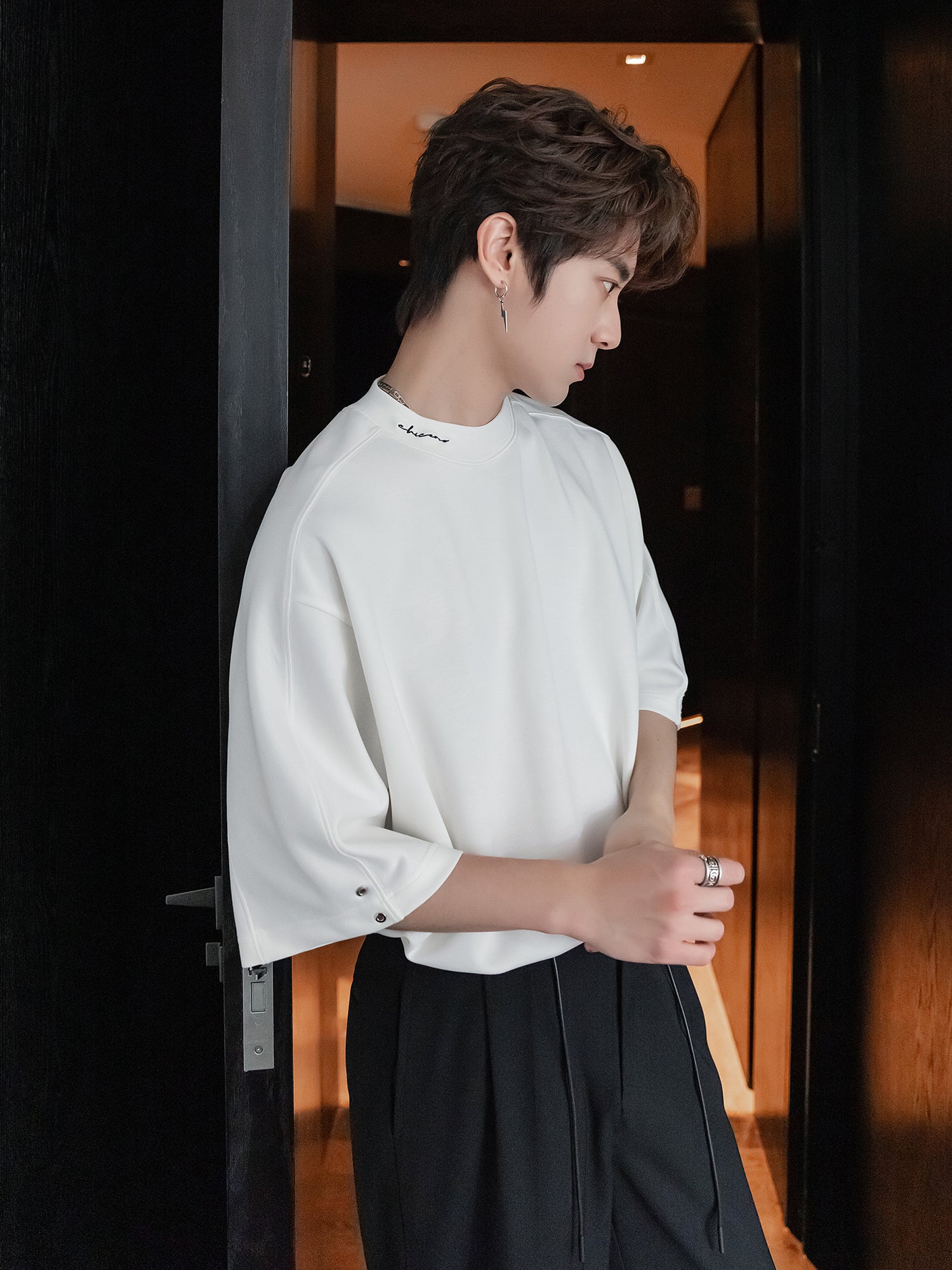 Loose Fit Riveted Mid-Sleeve Pullover