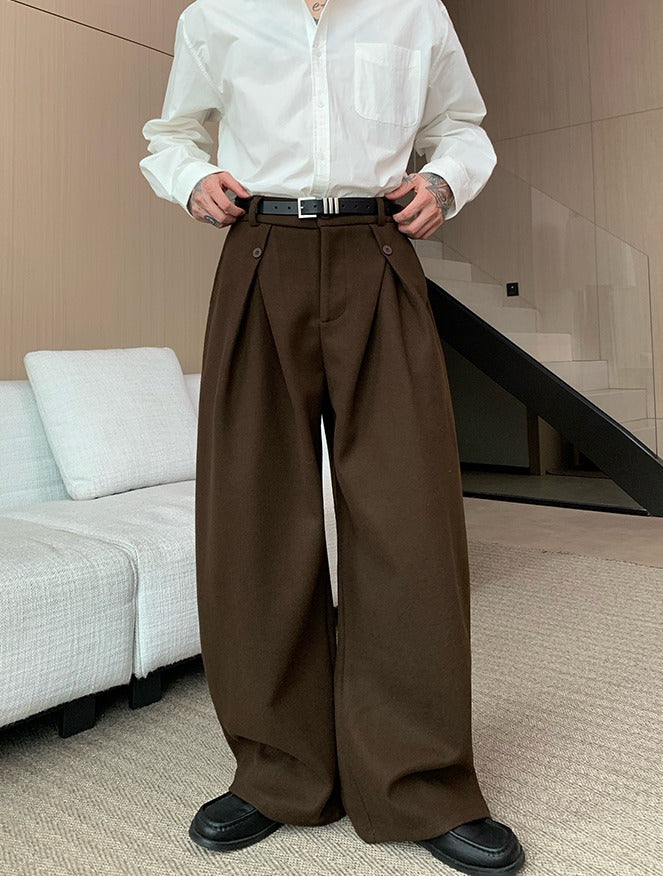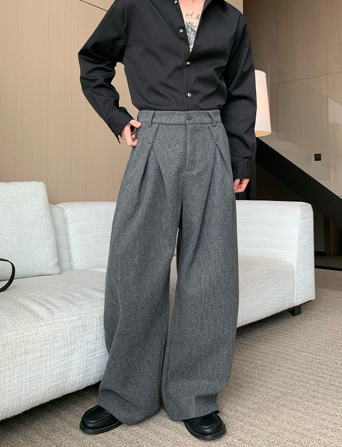Plissé Wol Wijde Rechte Broek