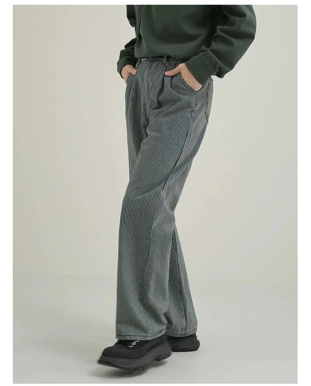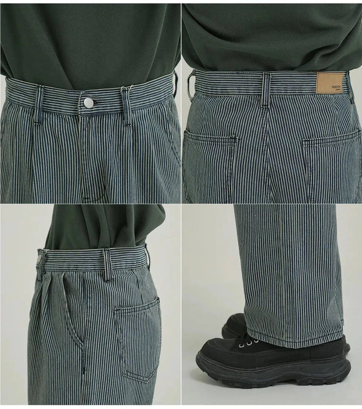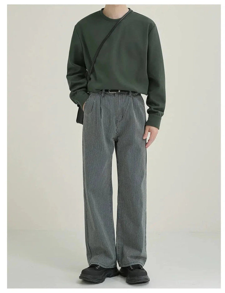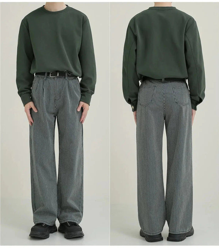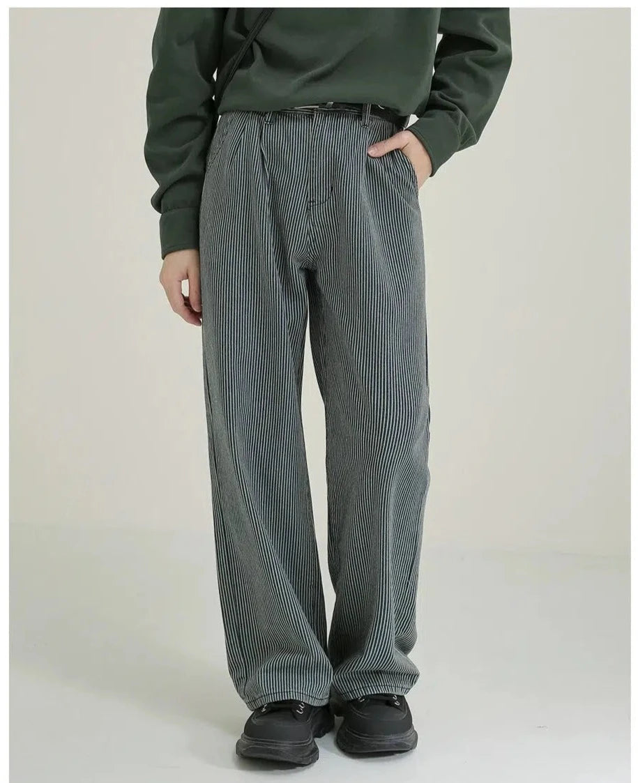 Blue Striped Straight-leg Jeans