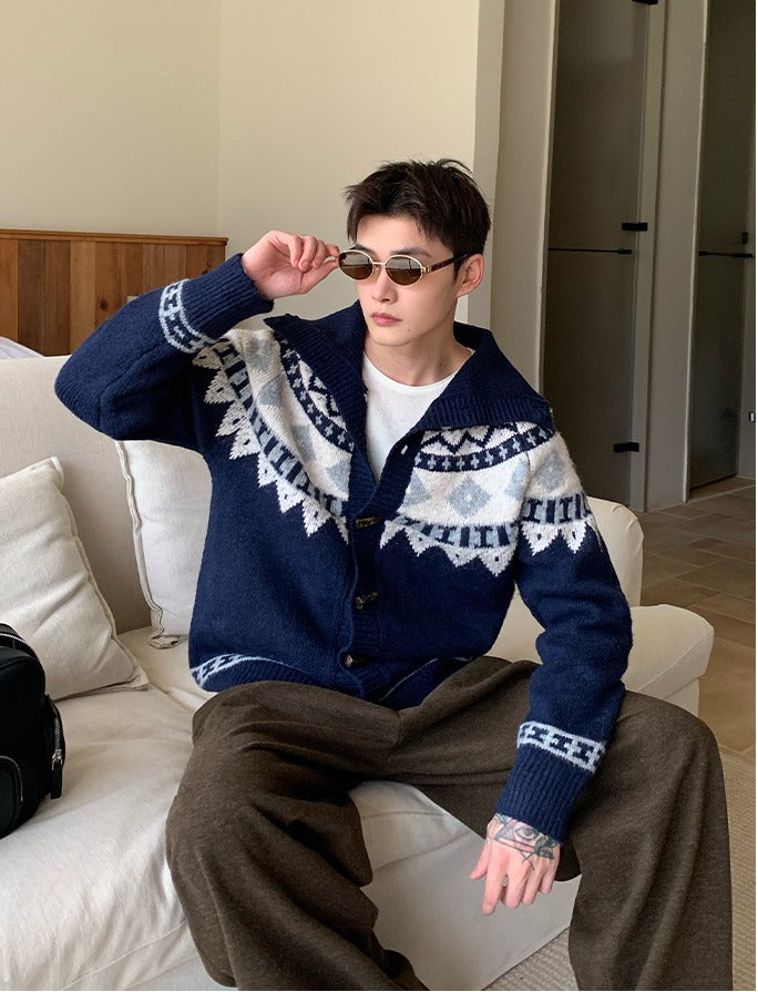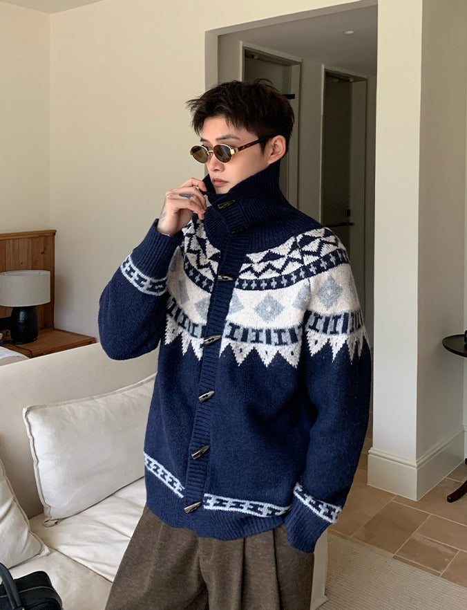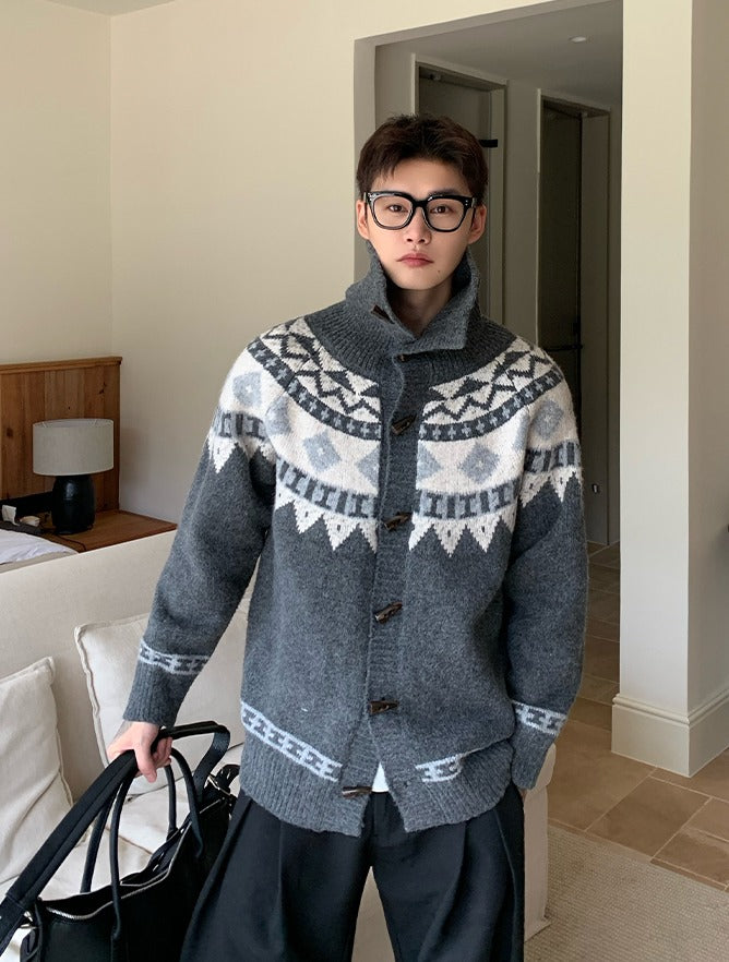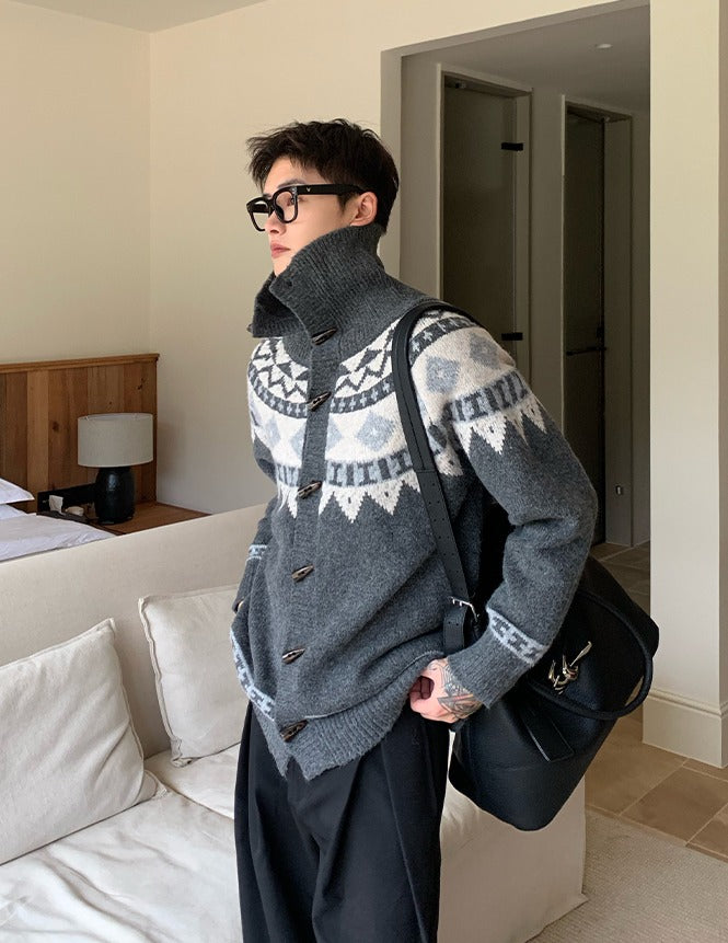 Fair Isle Wol Hoge-Hals Toggle Cardigan