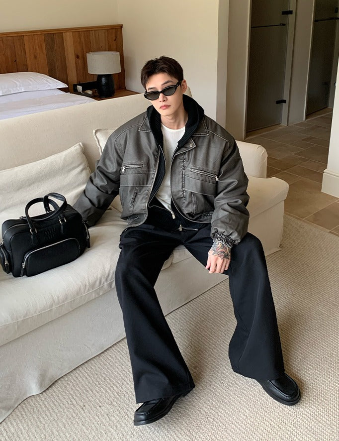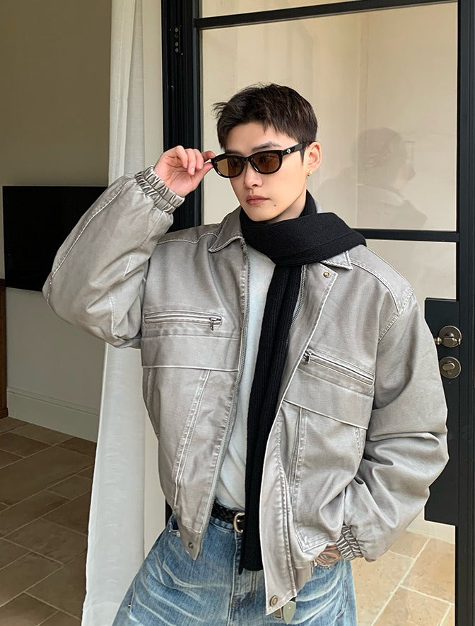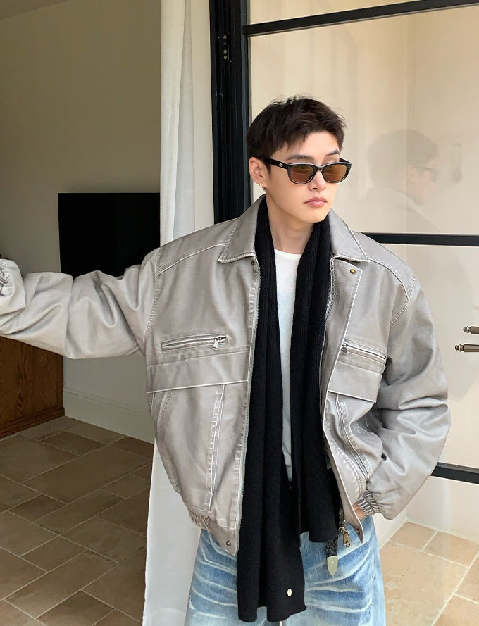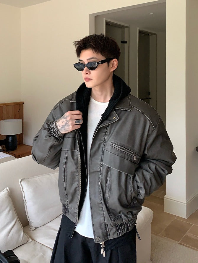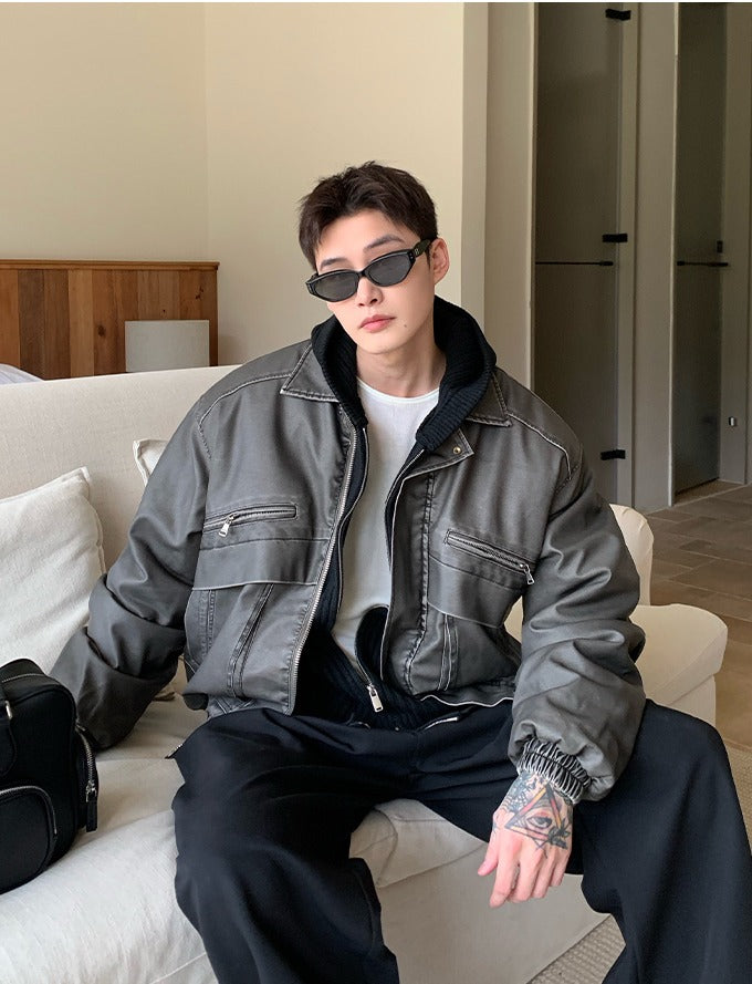 Vintage gewassen leren gewatteerde jas