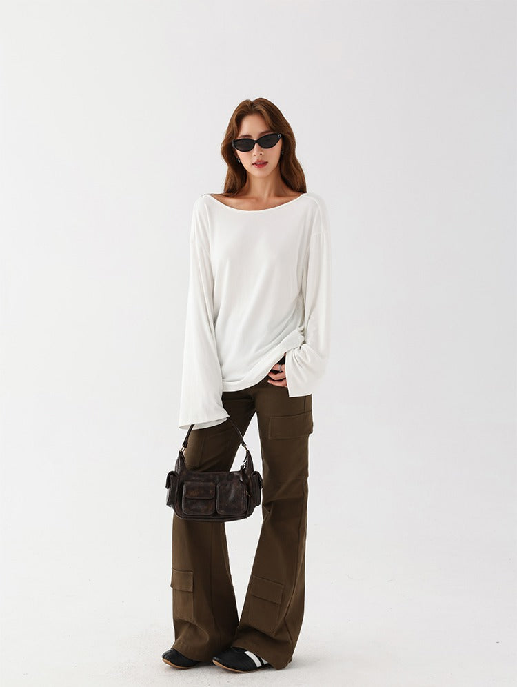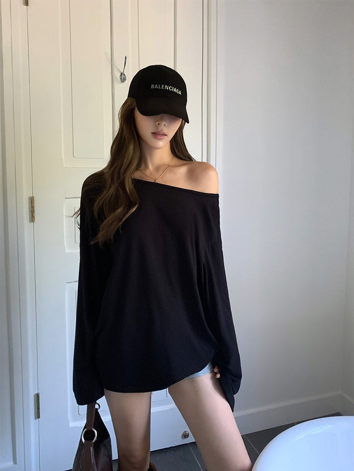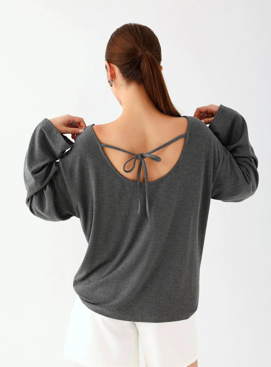 Rugloze Lace-Up Schuin Schouder Turtleneck