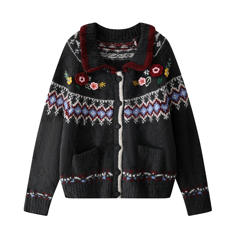 - Gebreide textuur met geborduurde bloemdetails