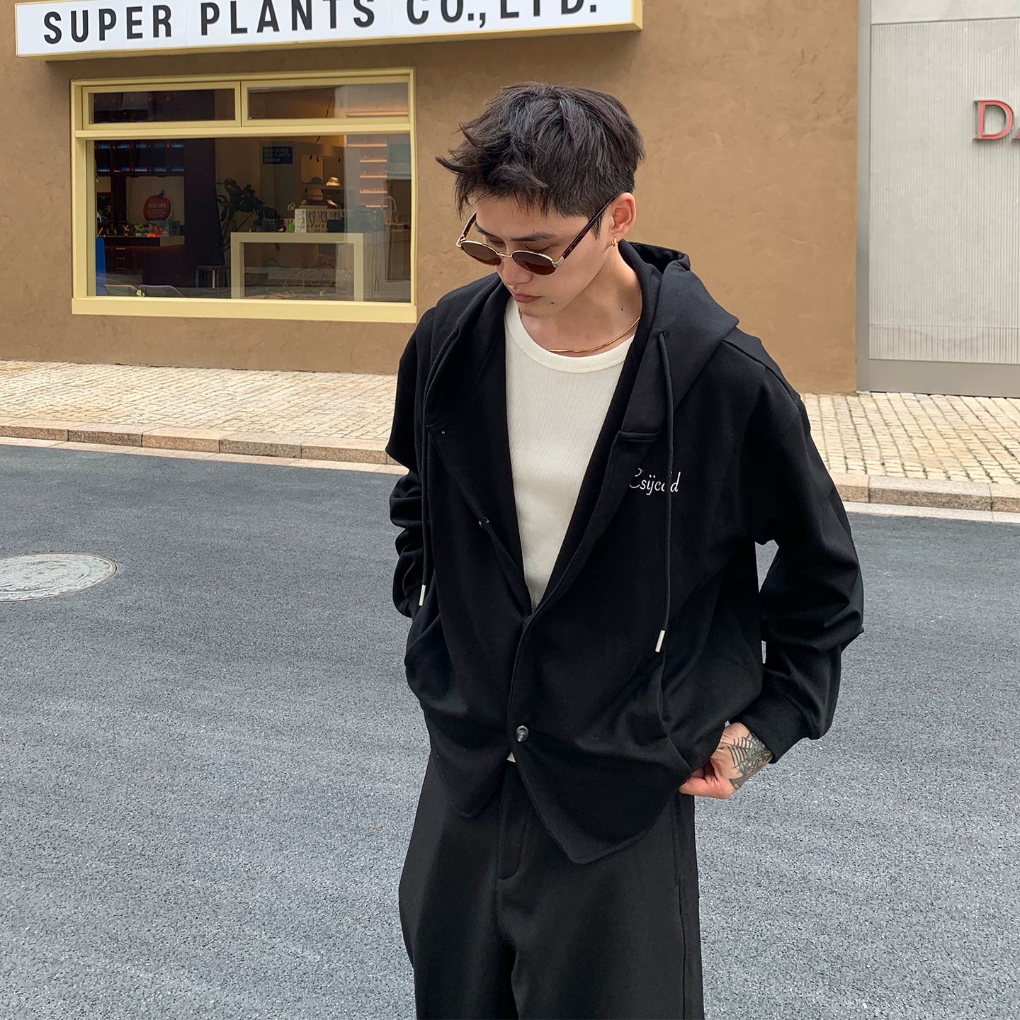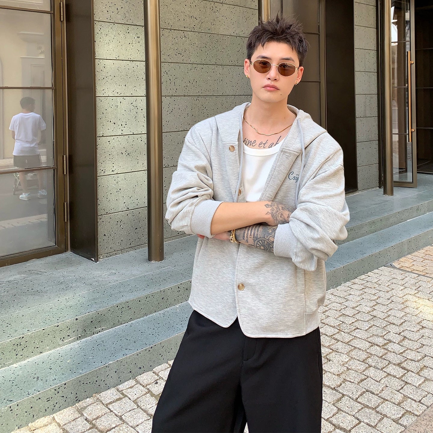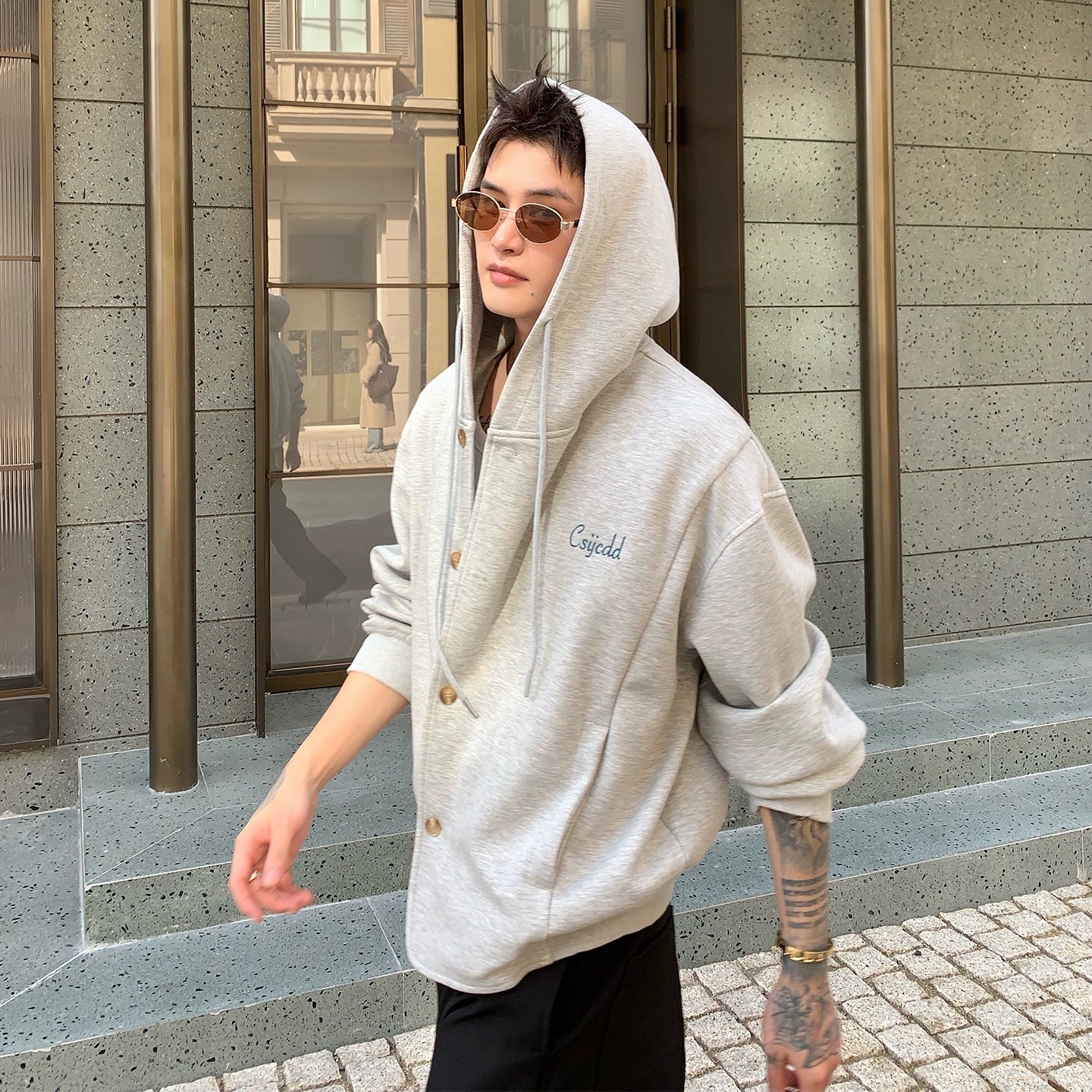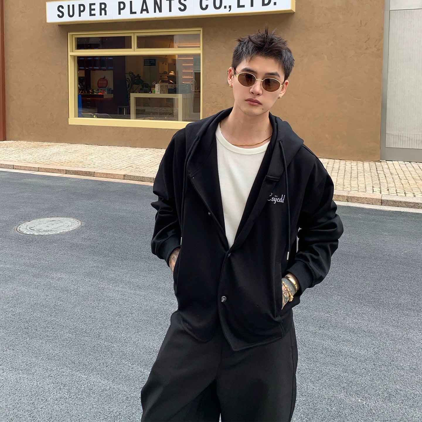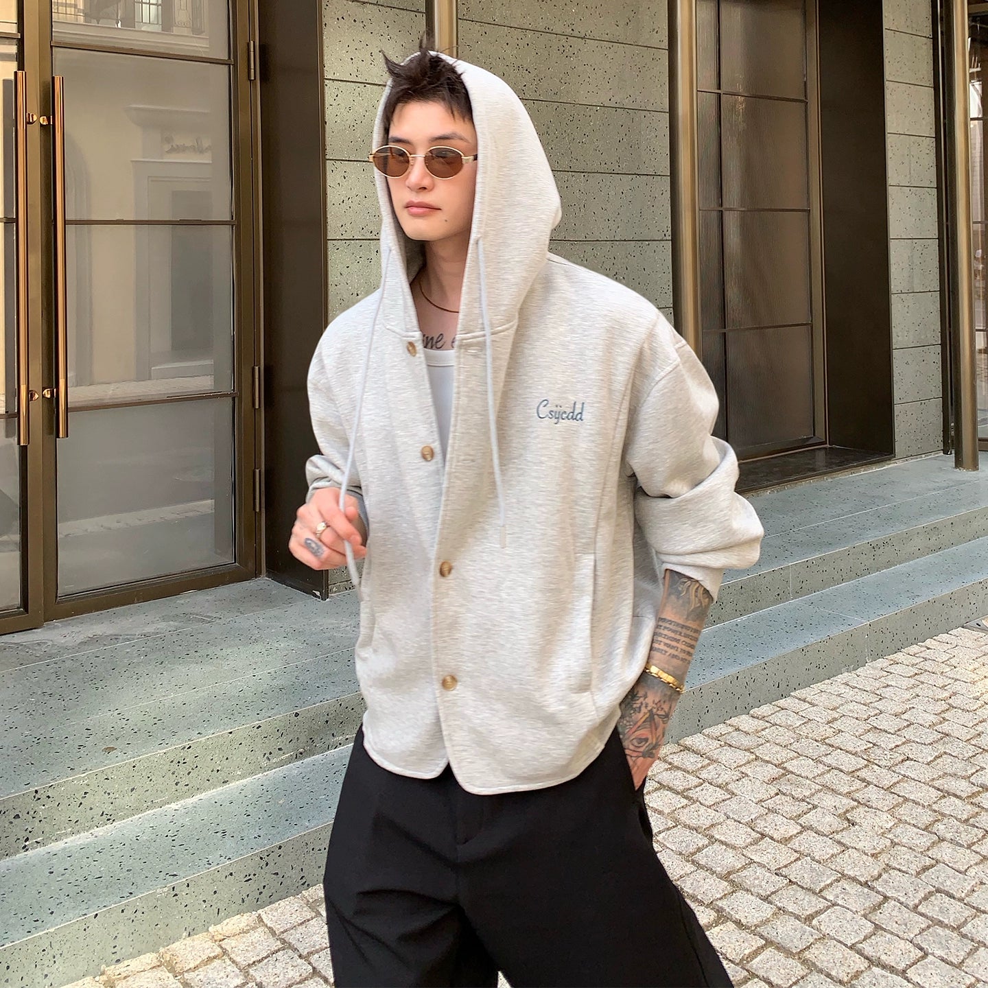 Letter Embroidery Drawstring Hooded Cardigan