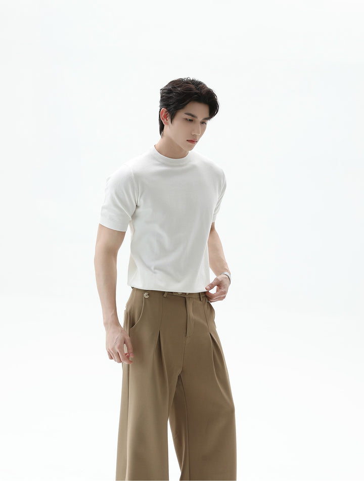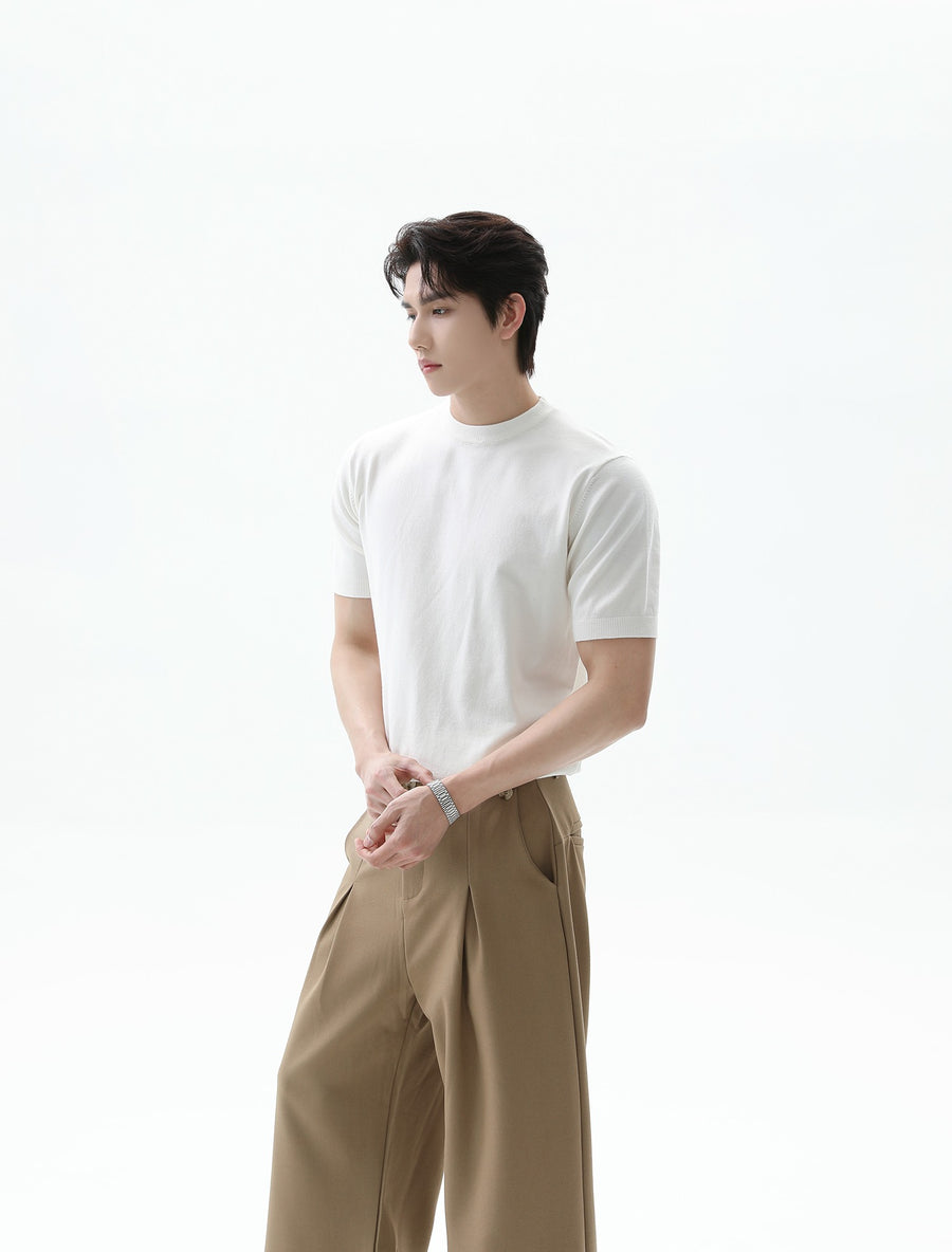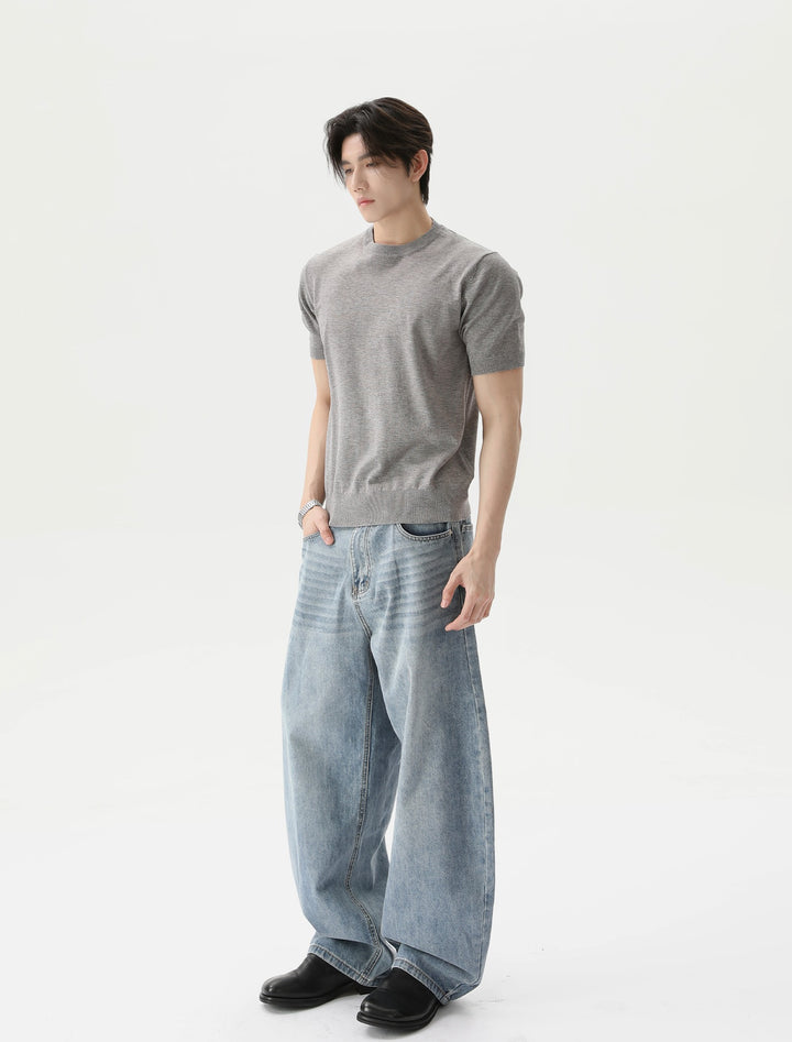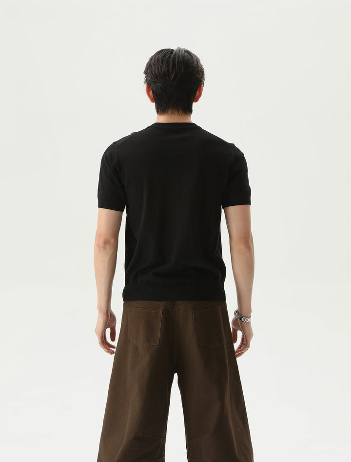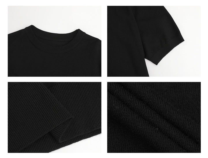 Gebreide Korte Mouwen Pullover Ronde Hals Shirt