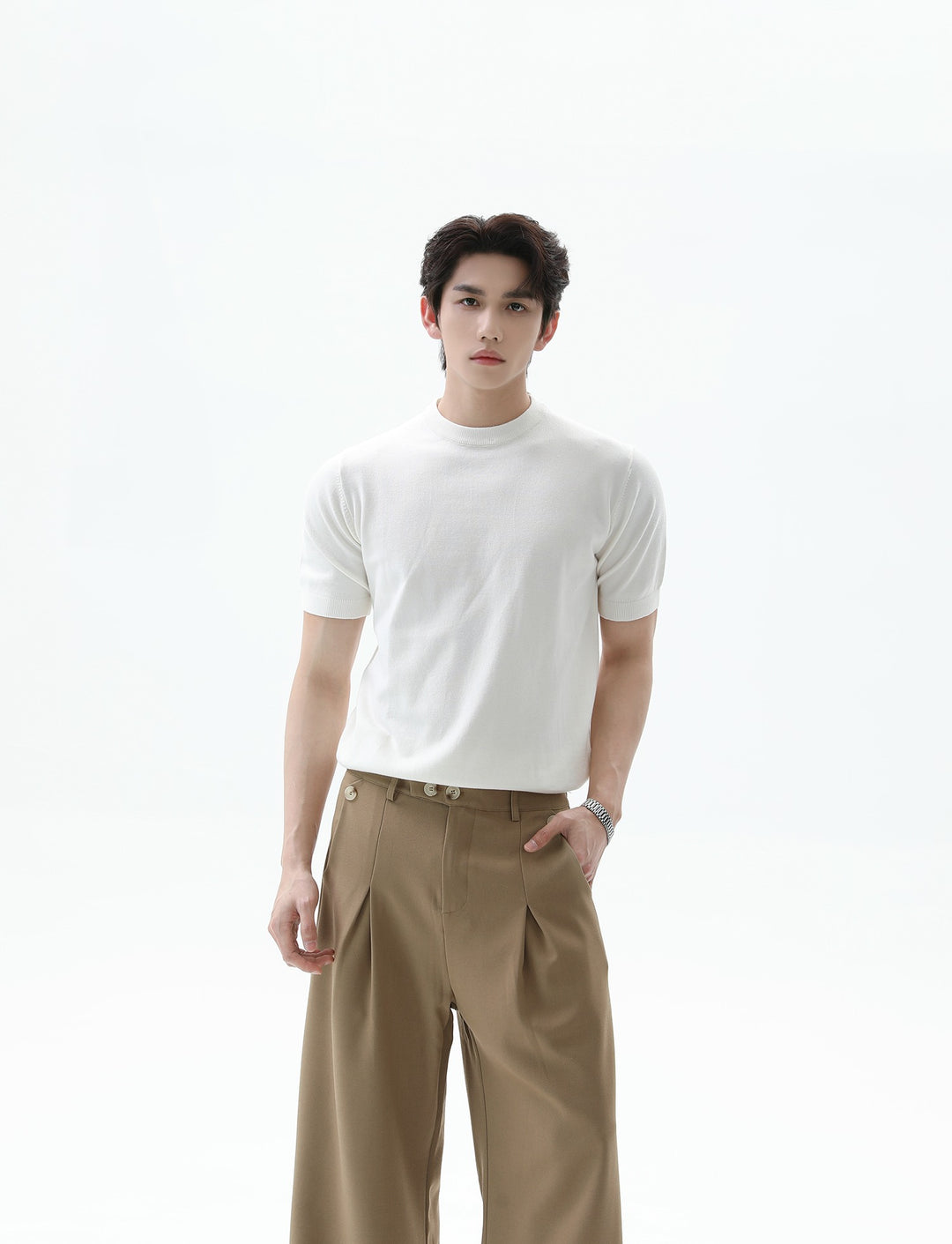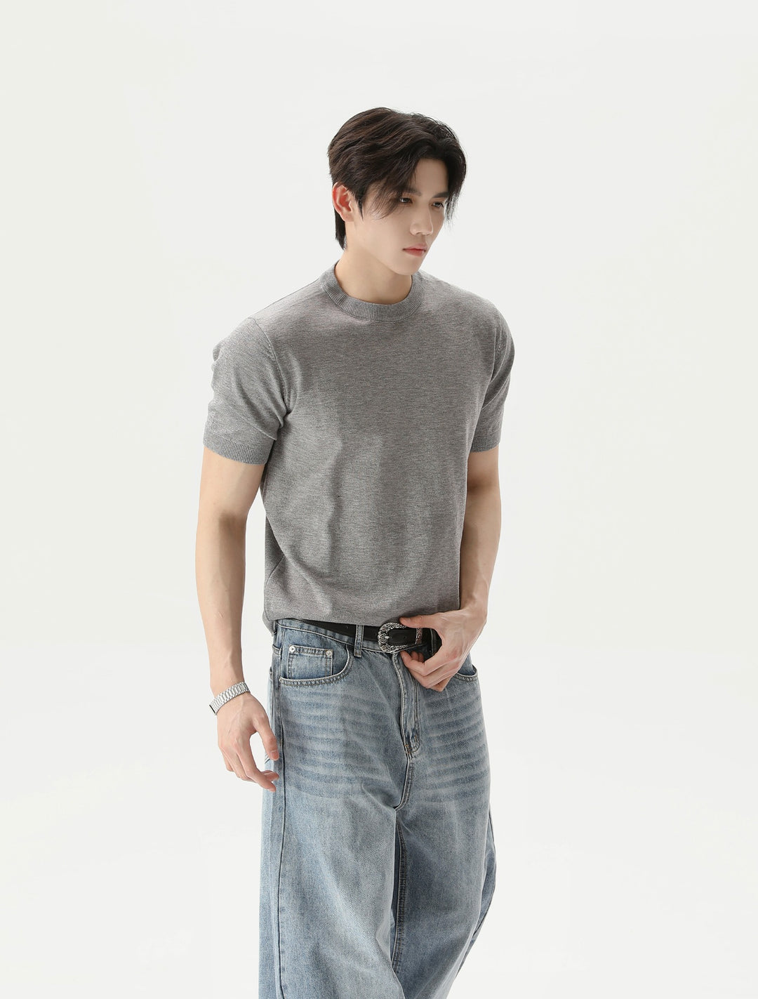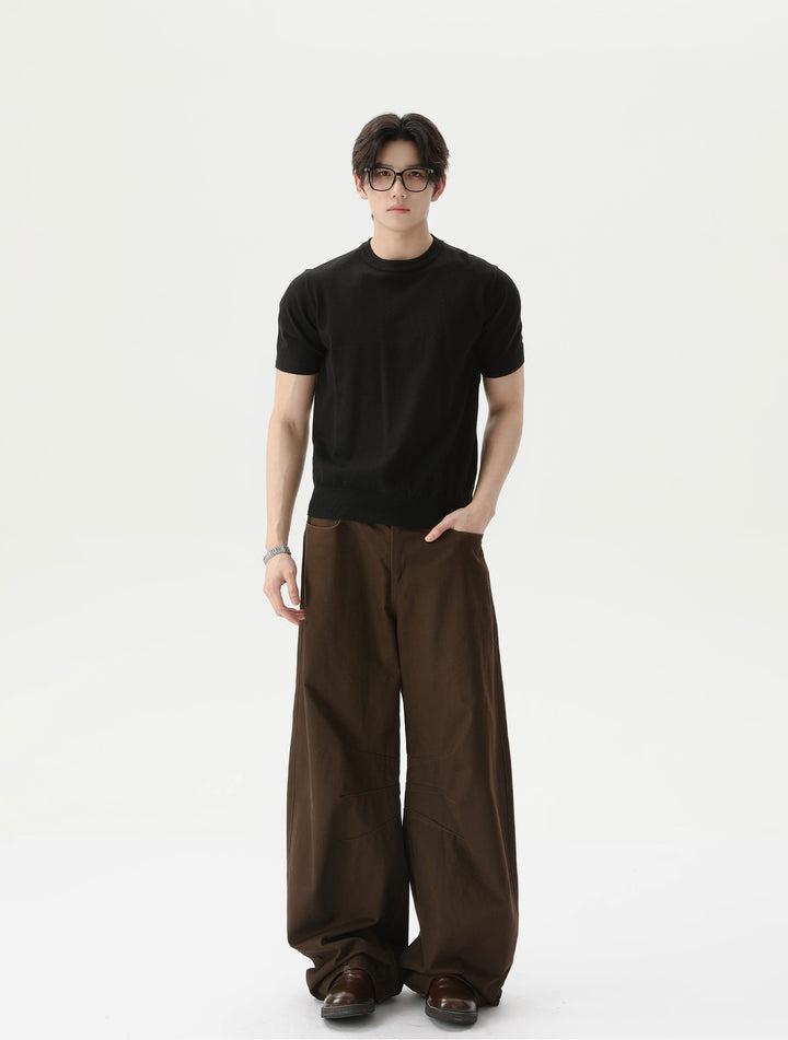 Gebreide Korte Mouwen Pullover Ronde Hals Shirt