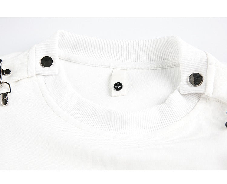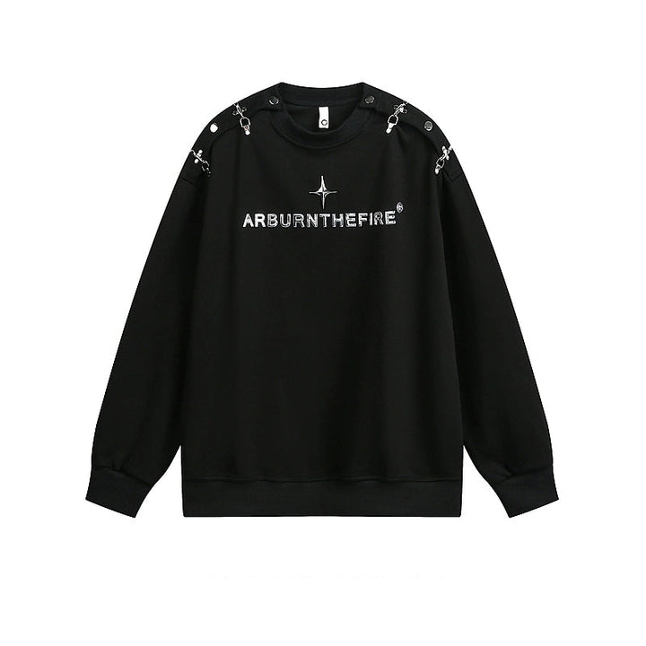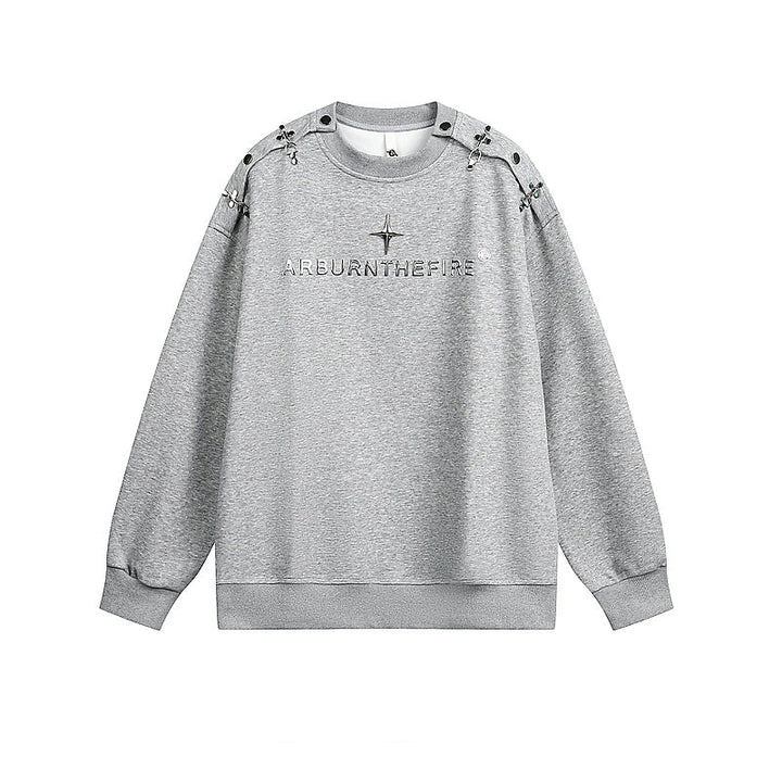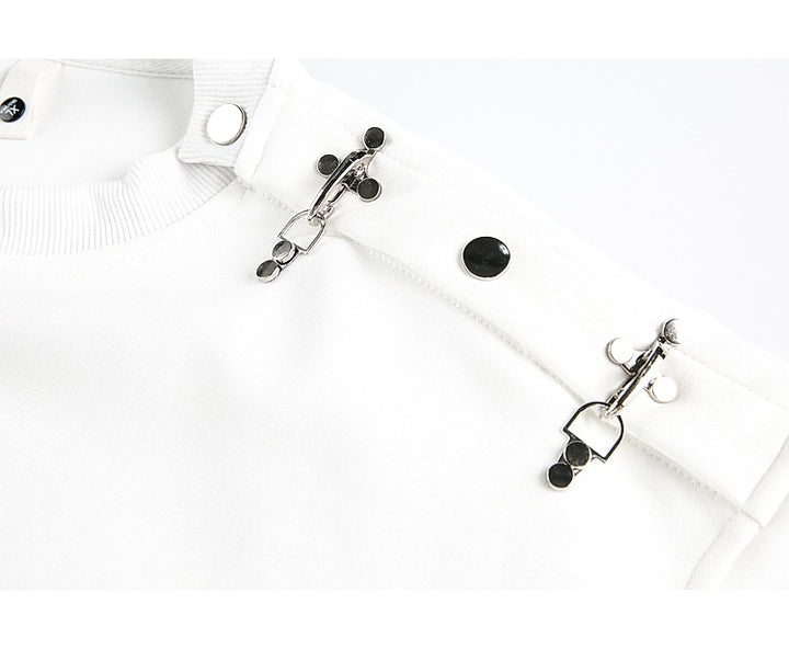 Dekonstruert metall knapp rund hals sweatshirt