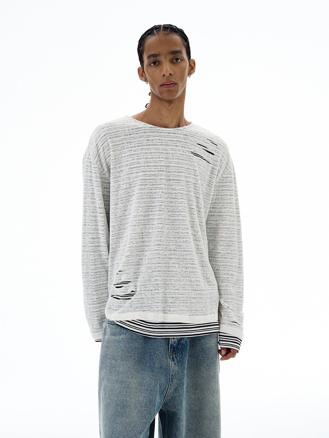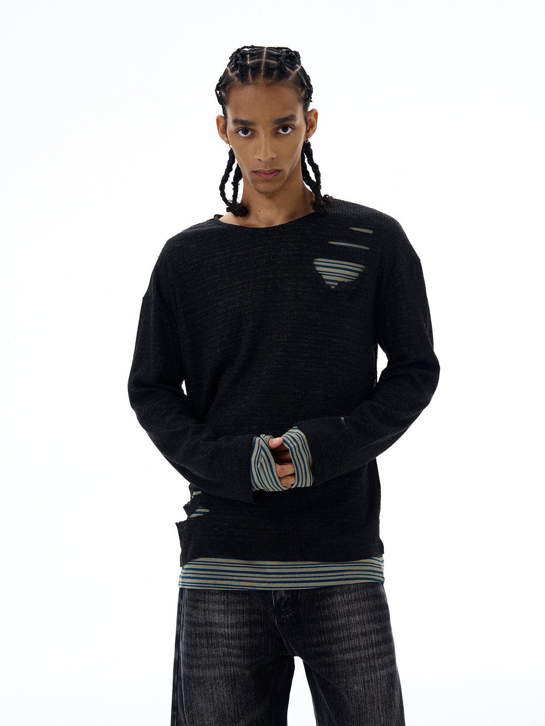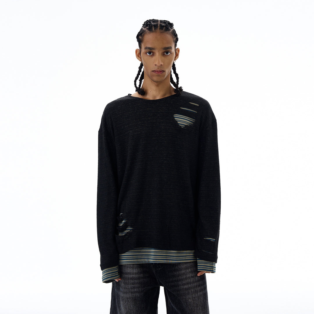 Slitt stripete strikket to-delt genser