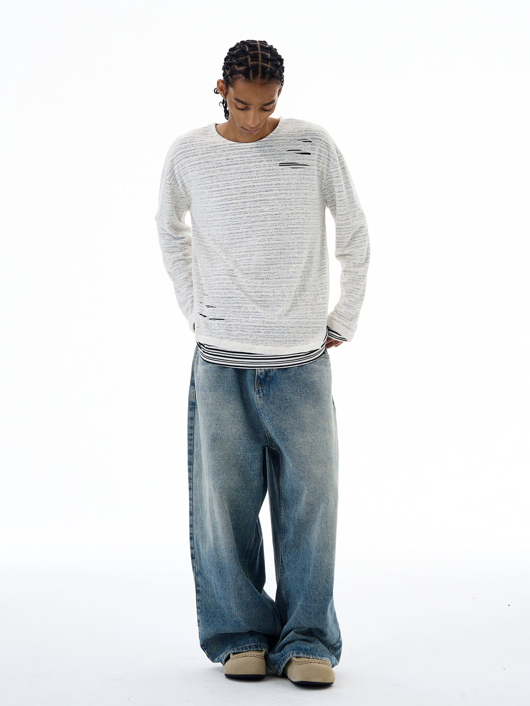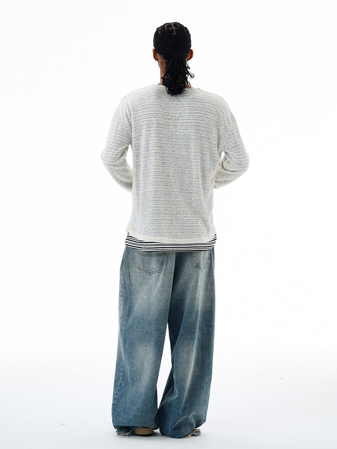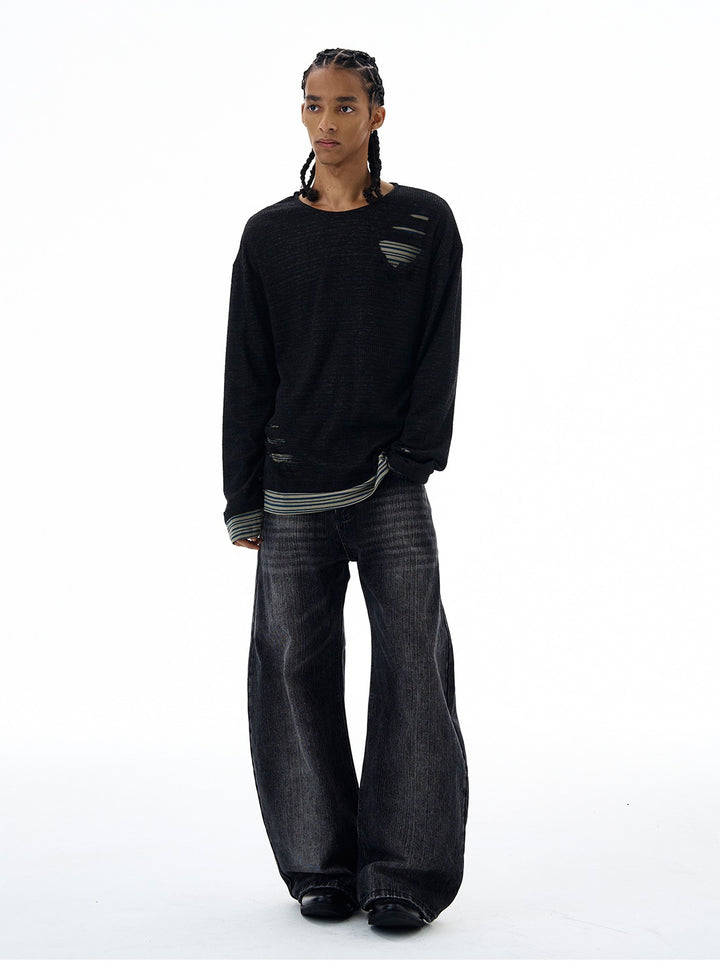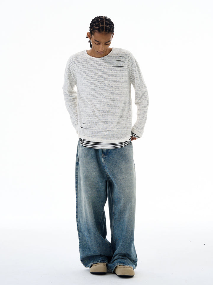 Slitt stripete strikket to-delt genser