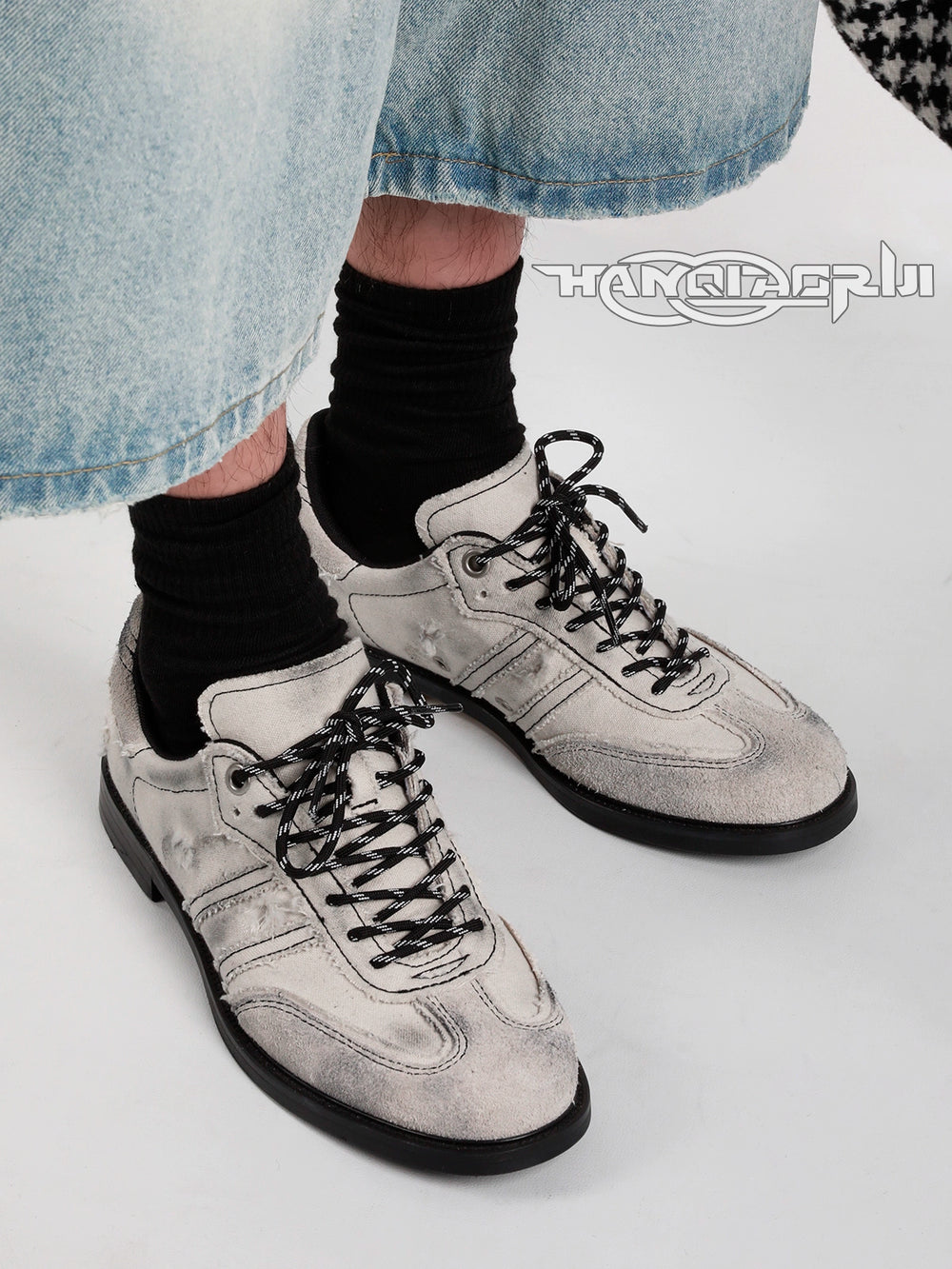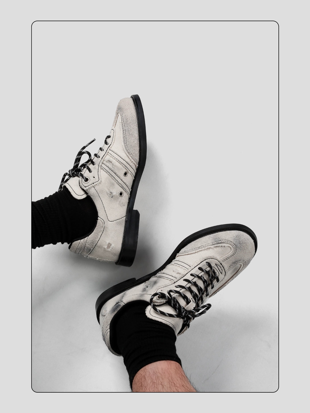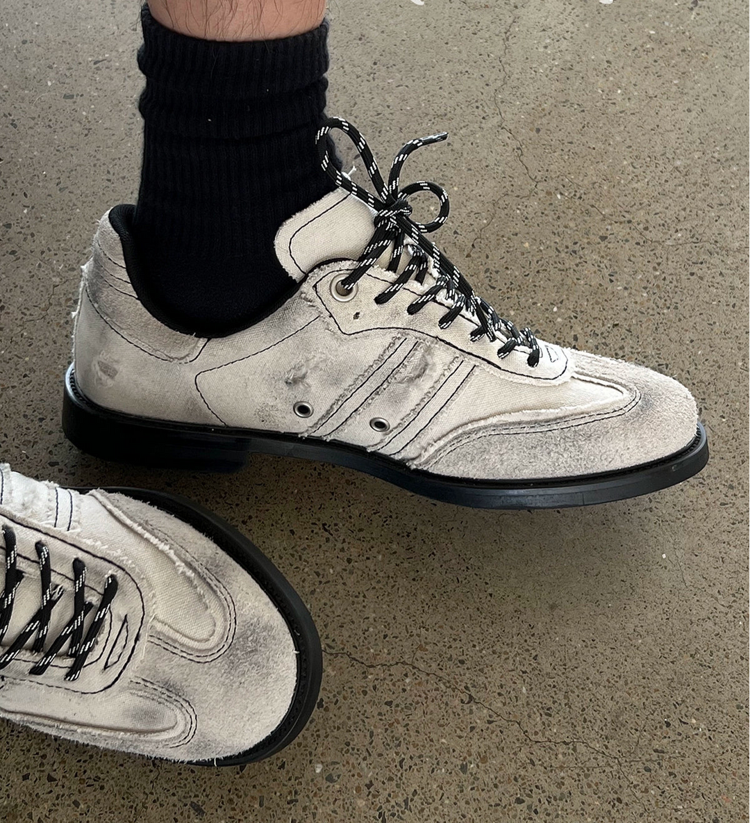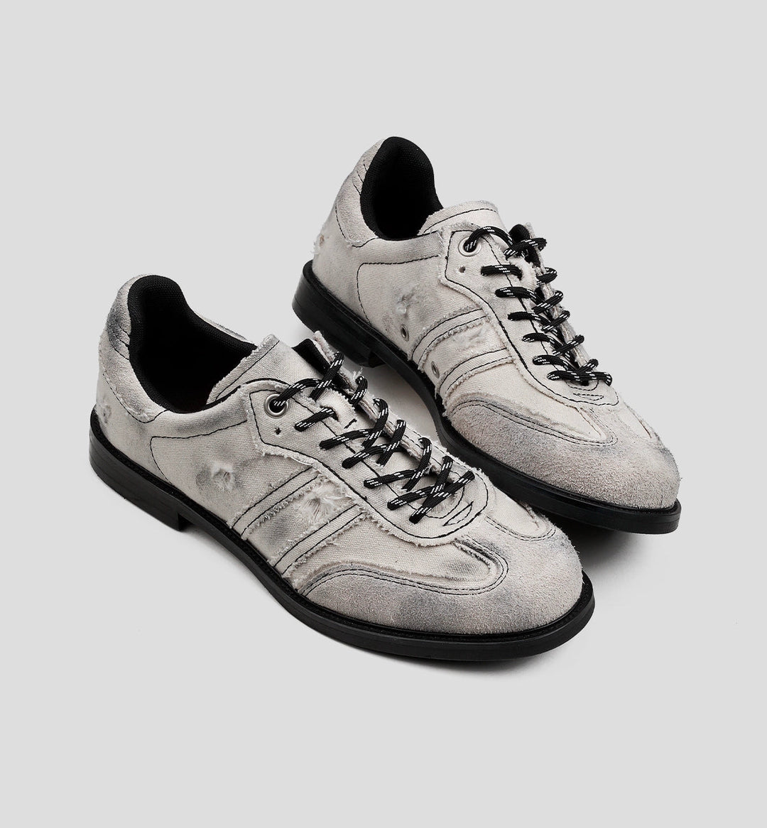 • Hele skoen laget av vasket lerret og vasket semsket skinn