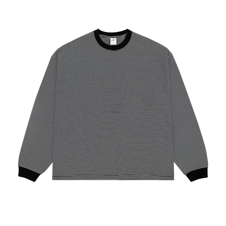 - Rund hals bred ribbestrikket design, forsterket med dobbel linje ved kragen og skuldrene