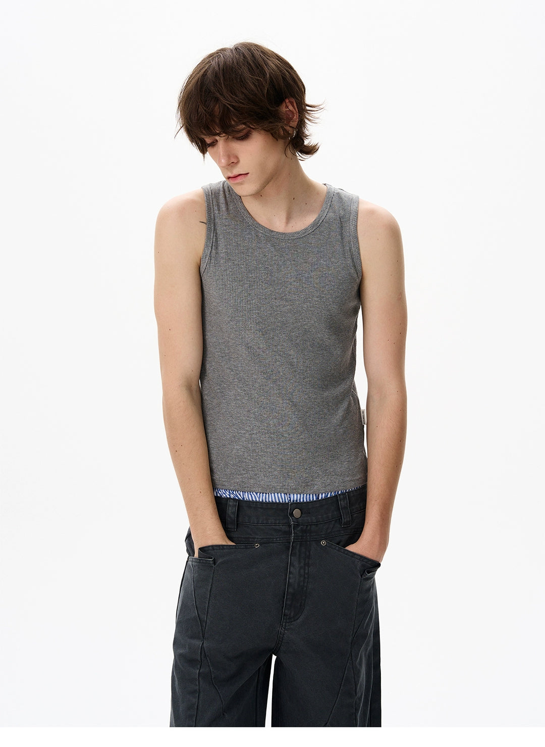 Slim Fit Ribbet Uten Ermer Sportsvest