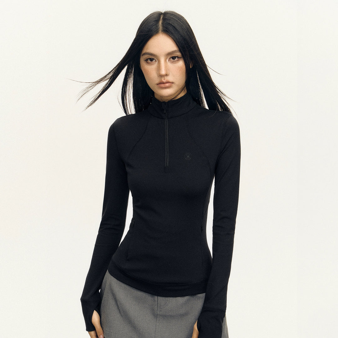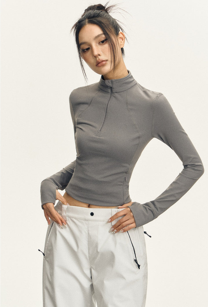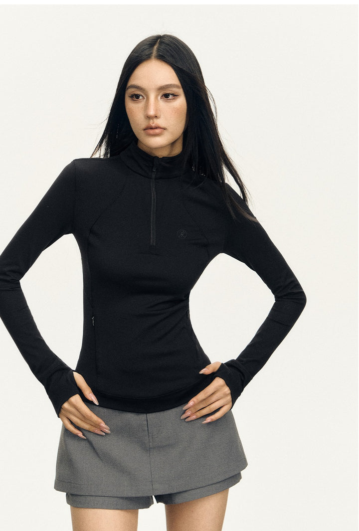 Slim Yoga Halv-Glidelås Turtleneck Topp