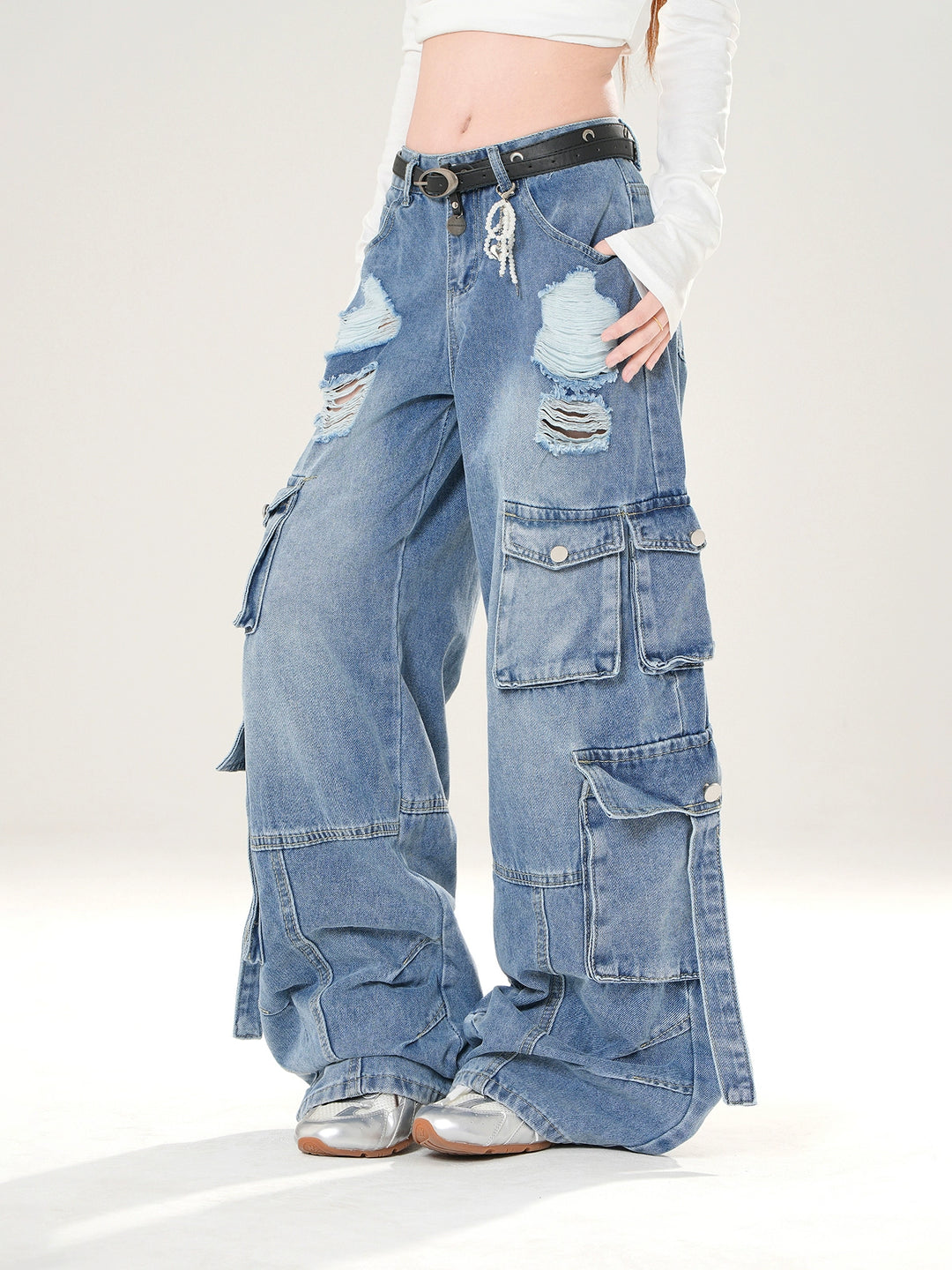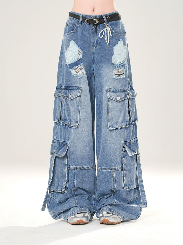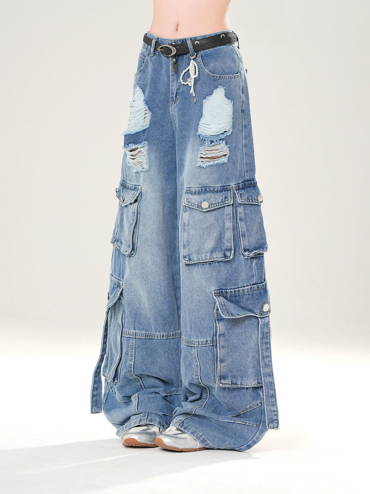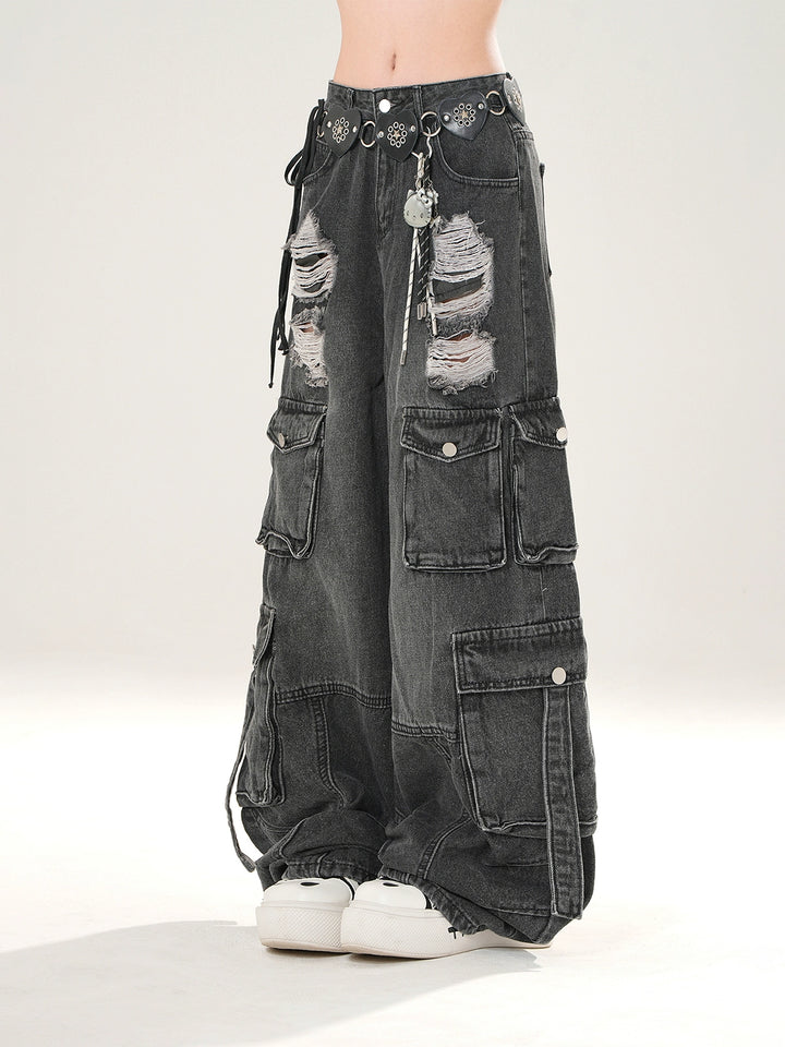Bredbenede ripped cargo denim bukser