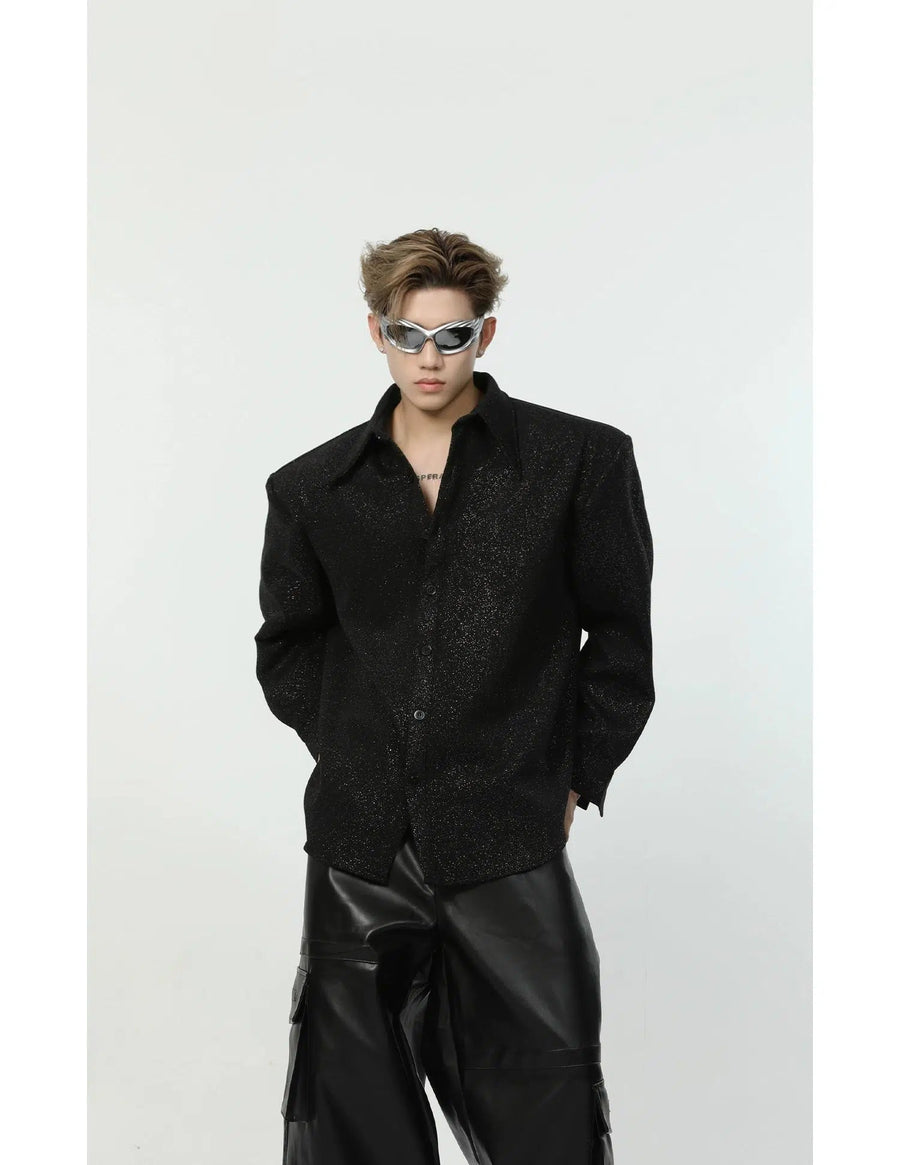 Galaxy Design Oversized Shirt with Shoulder Pads