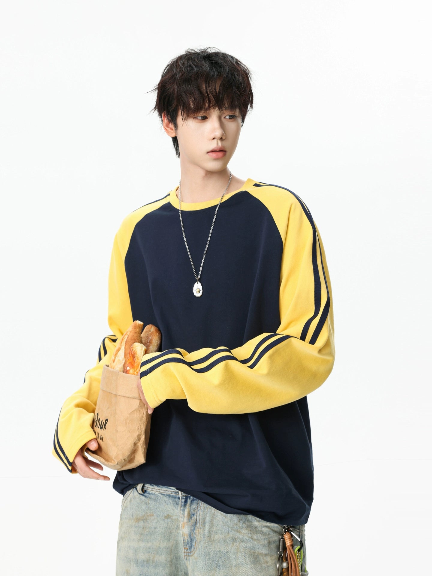 - Stil: Fargeblokk stripete langermet T-skjorte