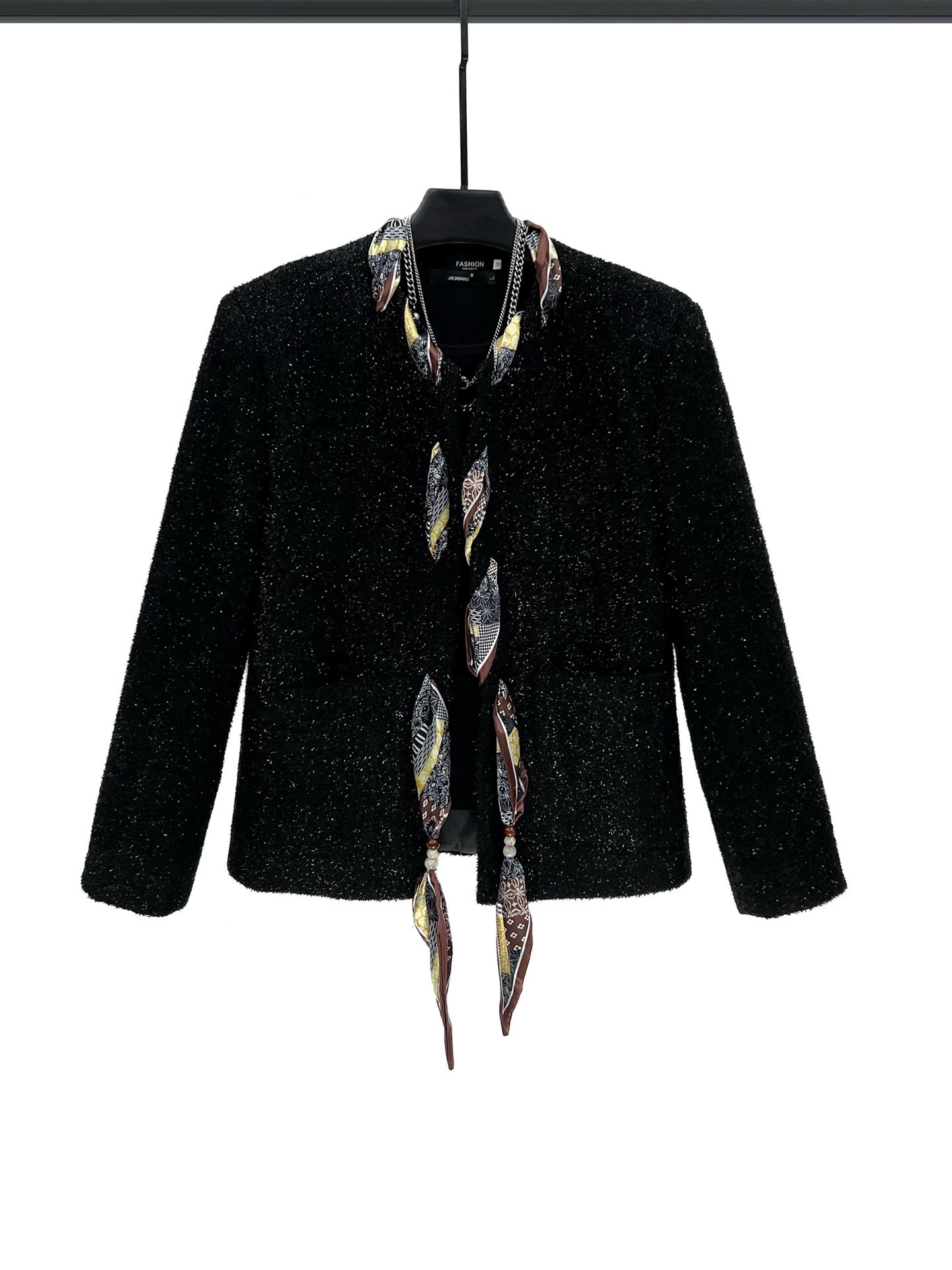 - Stoff: Bouclé teksturert stoff med metalltråd