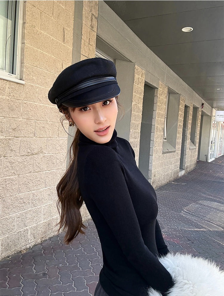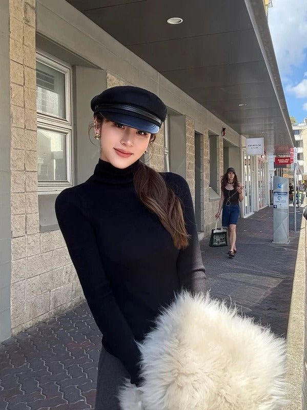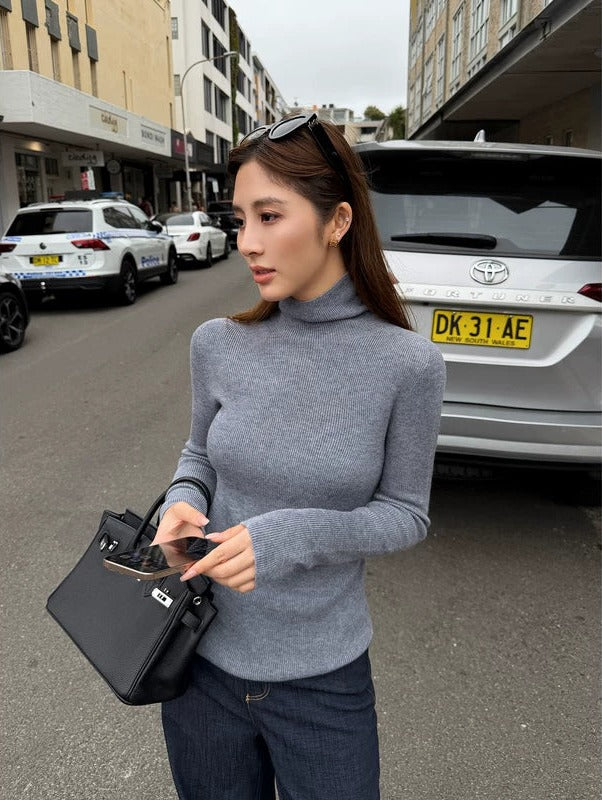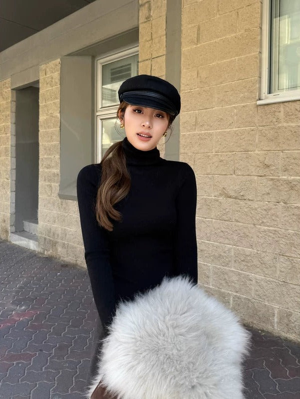 - Wysoki kołnierz, który podkreśla i uwydatnia linię szyi.
