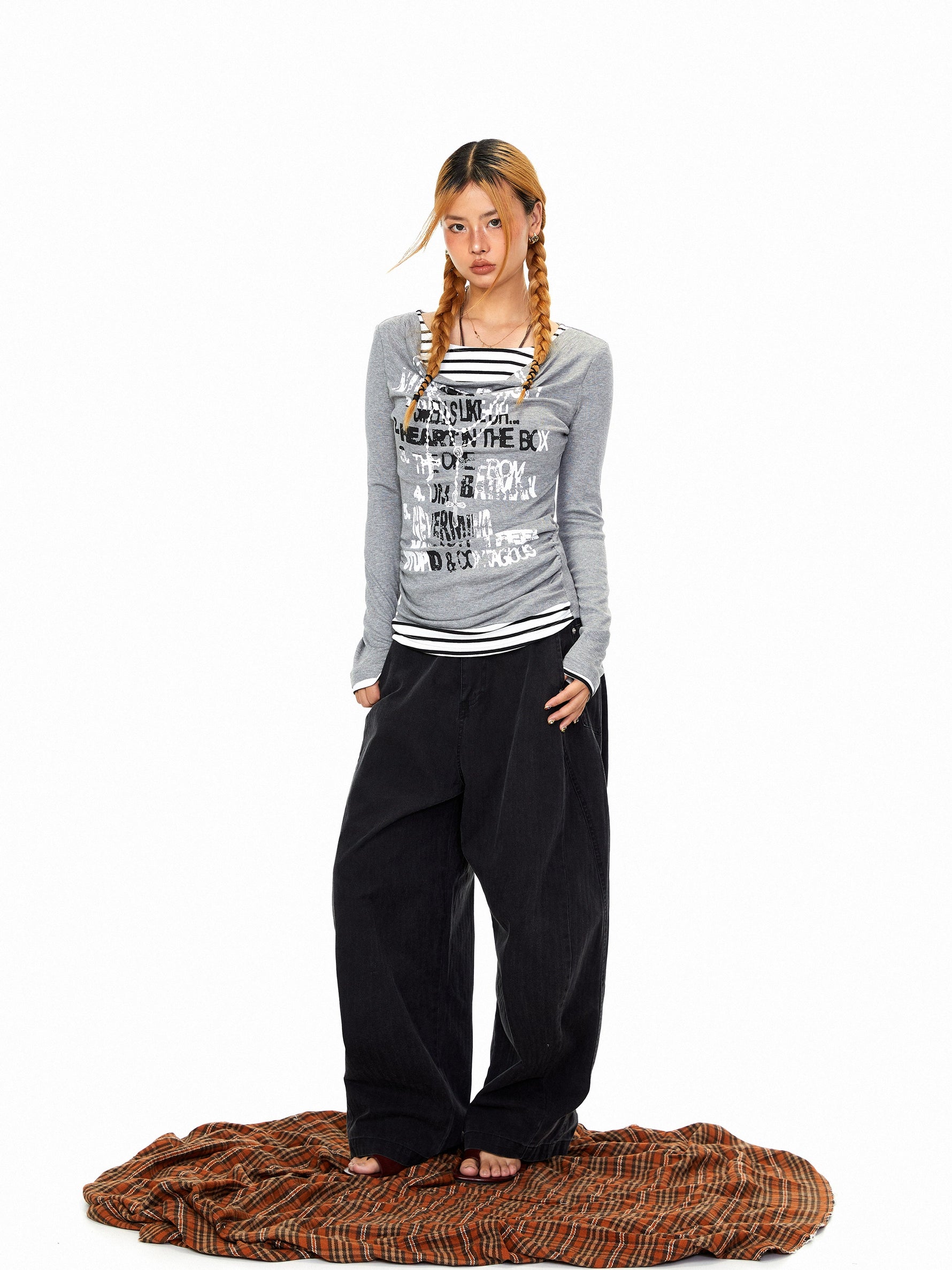 Calças Jeans de Splicing de Pernas Largas Desconstruídas