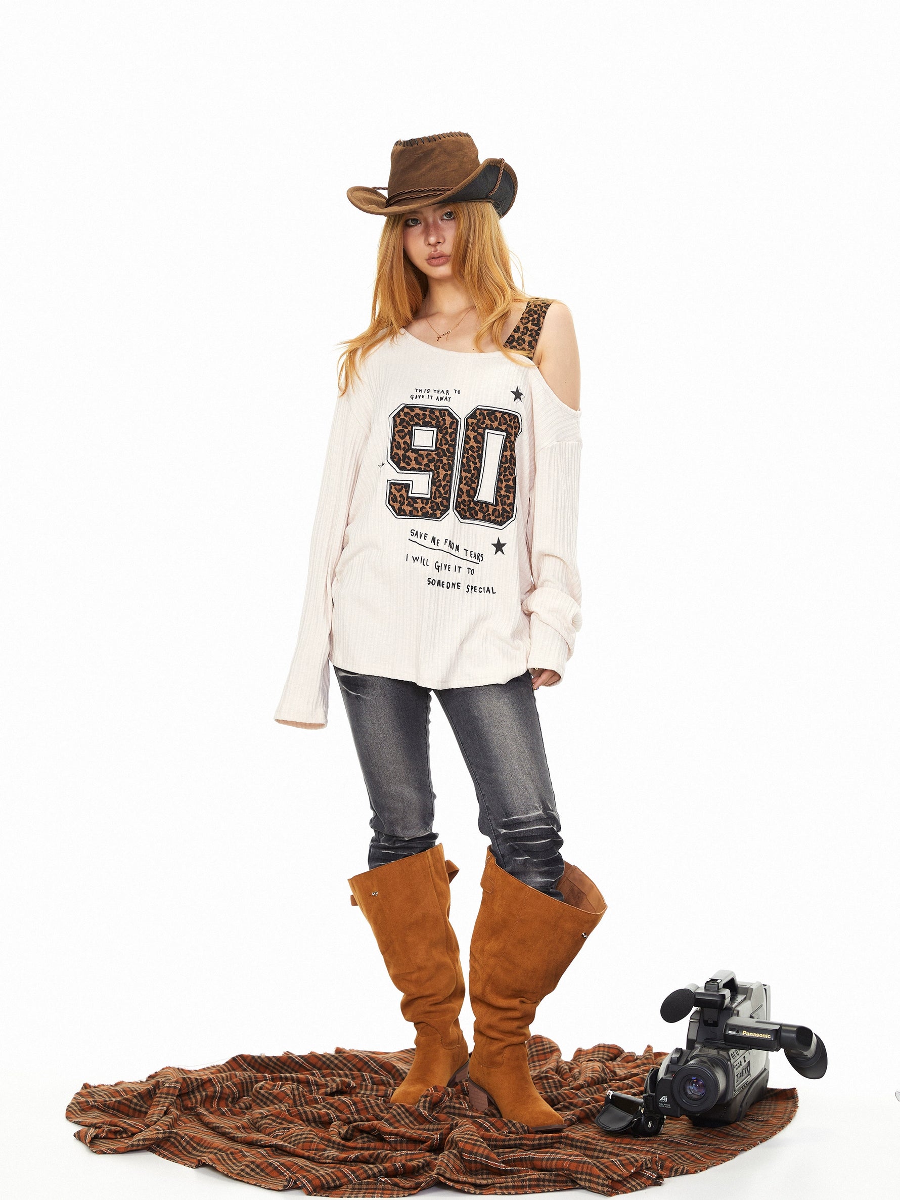 Blusa de Manga Longa Off-Shoulder com Estampa de Leopardo