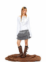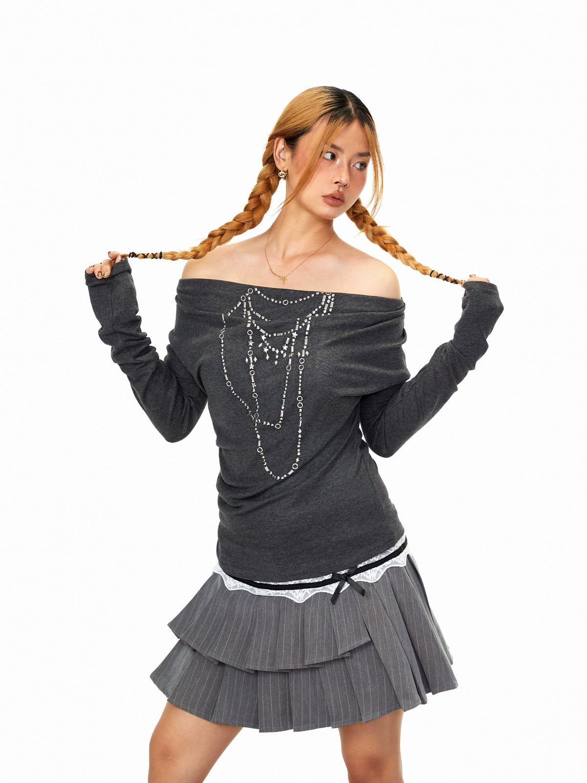 Blusa de Manga Longa com Um Ombro e Estampa de Colar