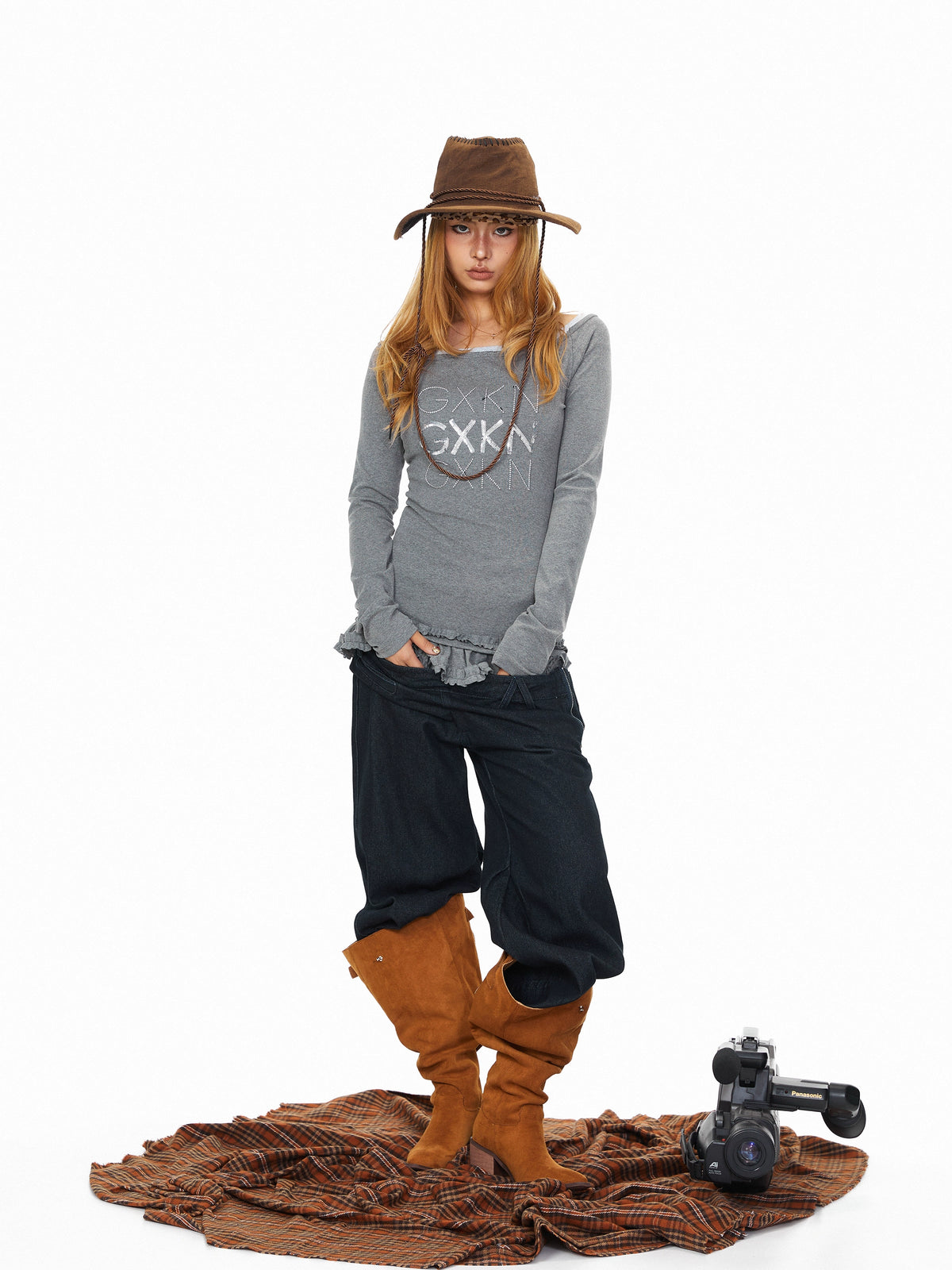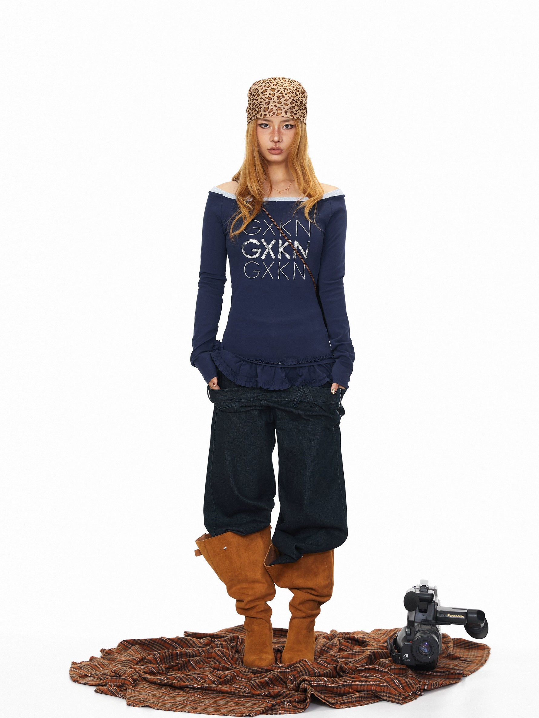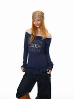 Blusa de Manga Longa com Babados e Ombros à Mostra