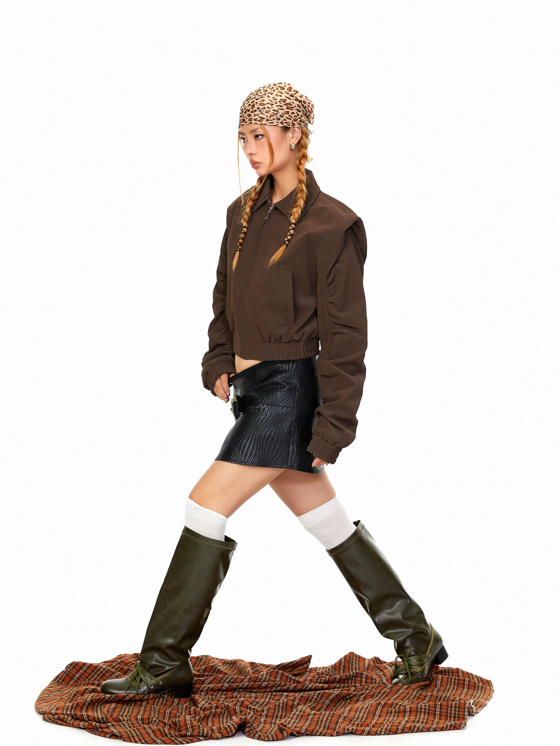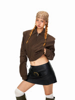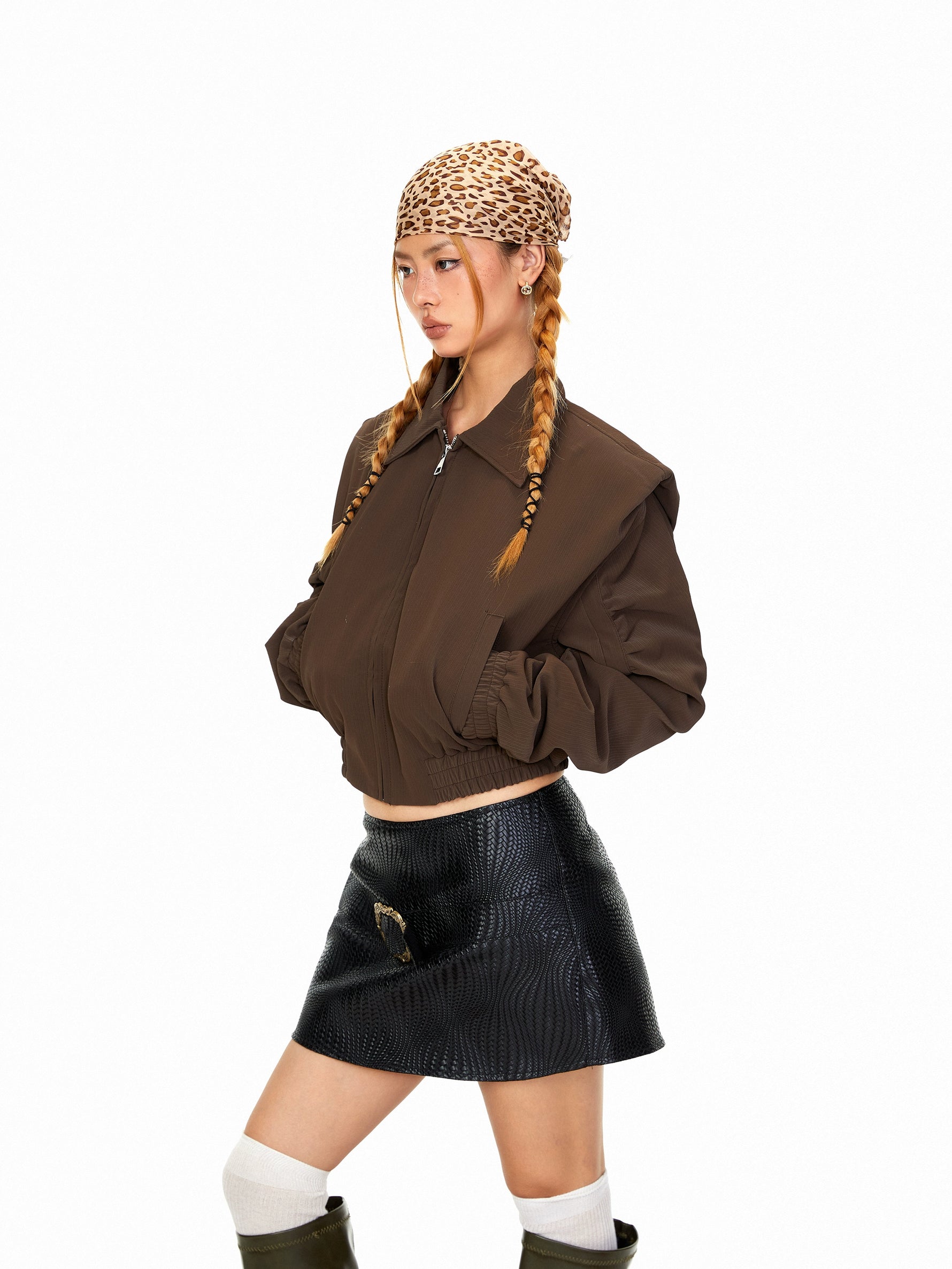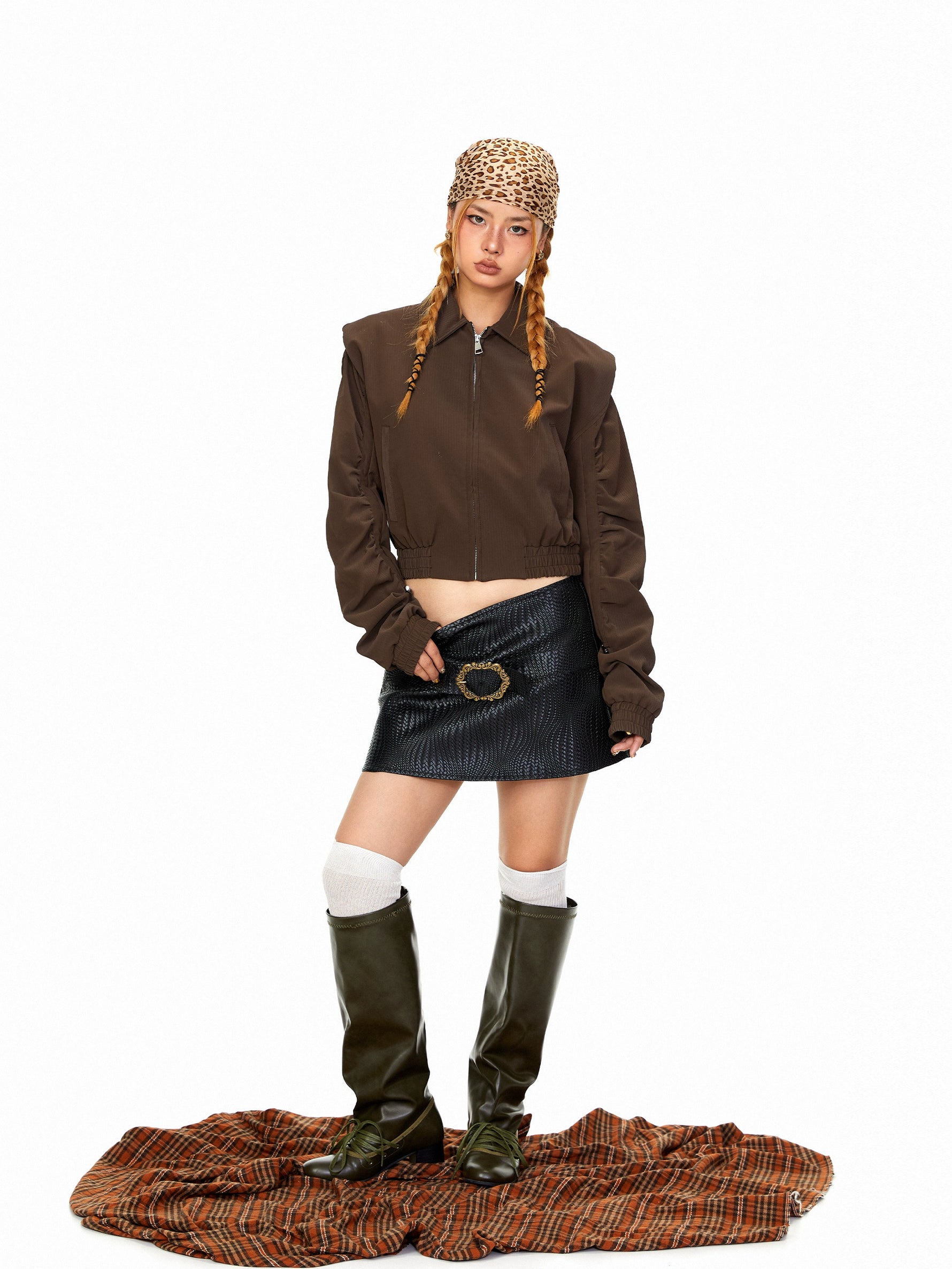 Jaqueta de Couro Cropped com Ombreiras Almofadadas