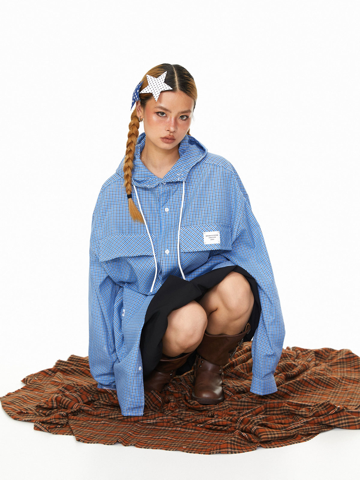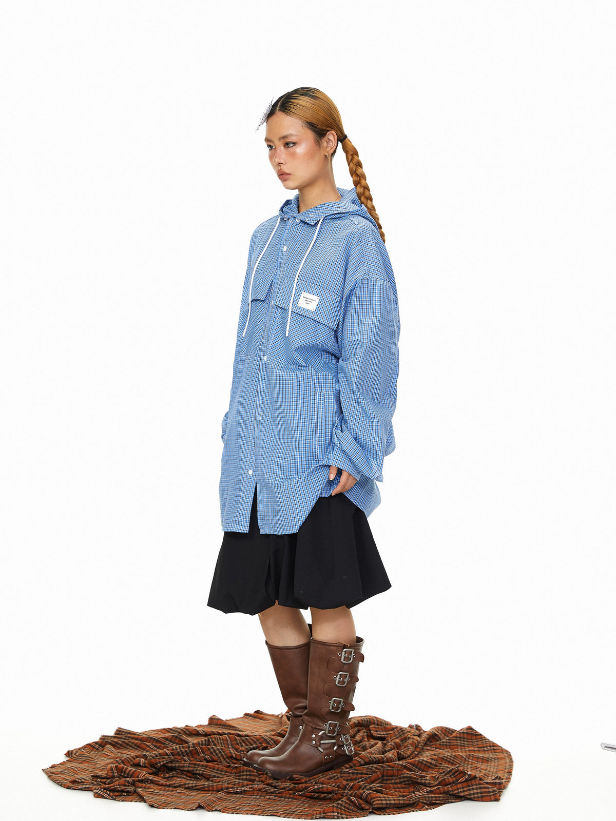 Camisa de Manga Longa com Capuz e Cordão xadrez