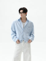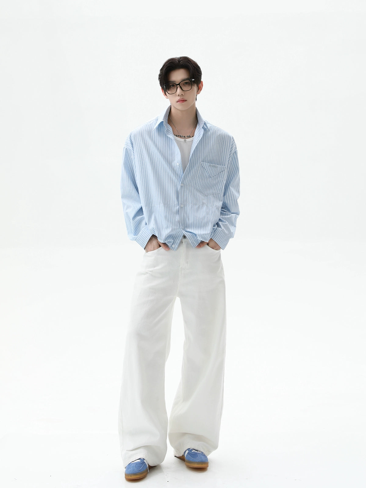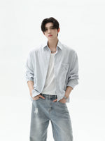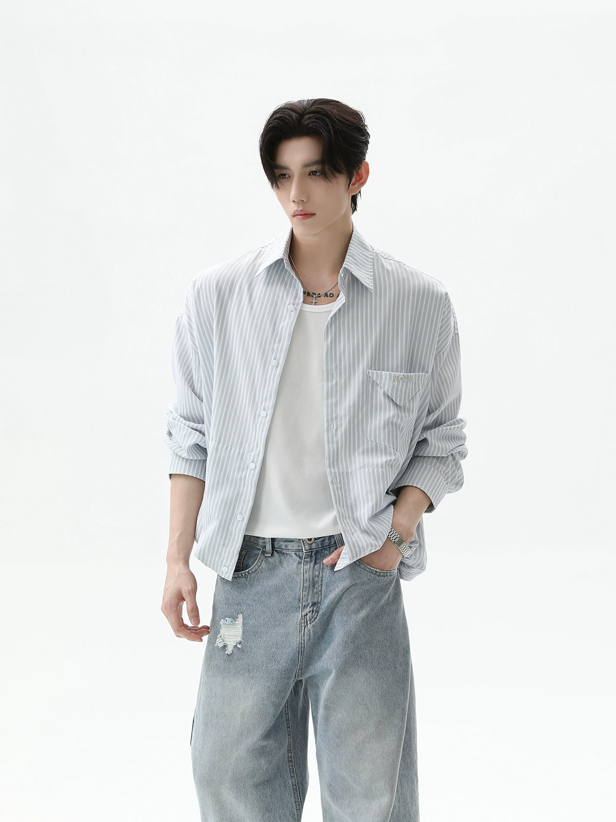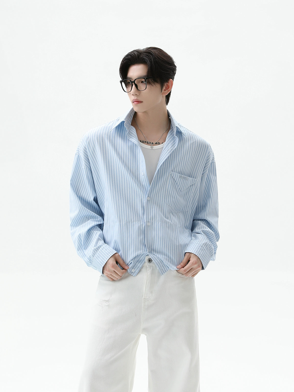 Camisa de Manga Longa com Bolso e Lapela Listrada