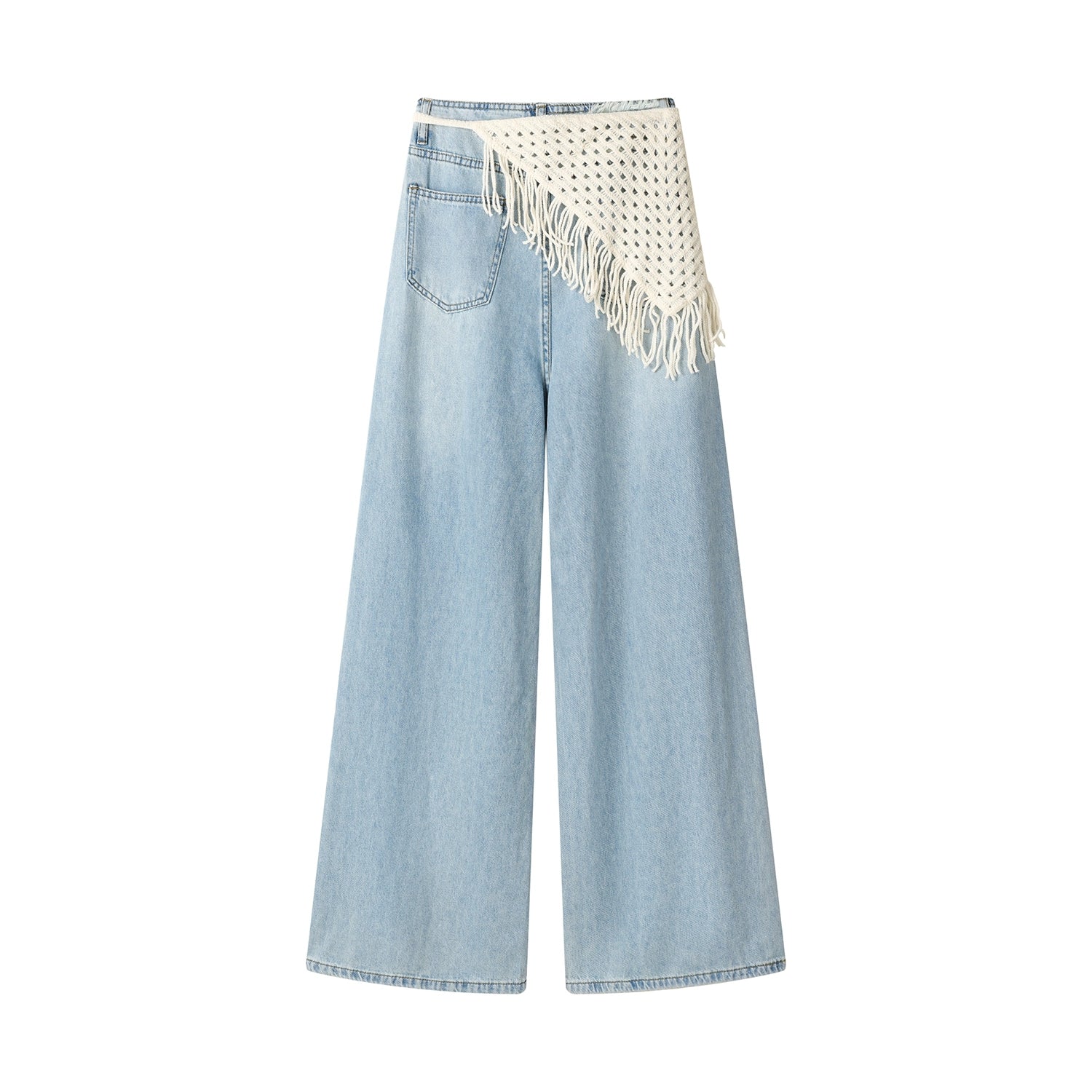 Calças de Cintura Alta com Pernas Largas e Alça Trançada