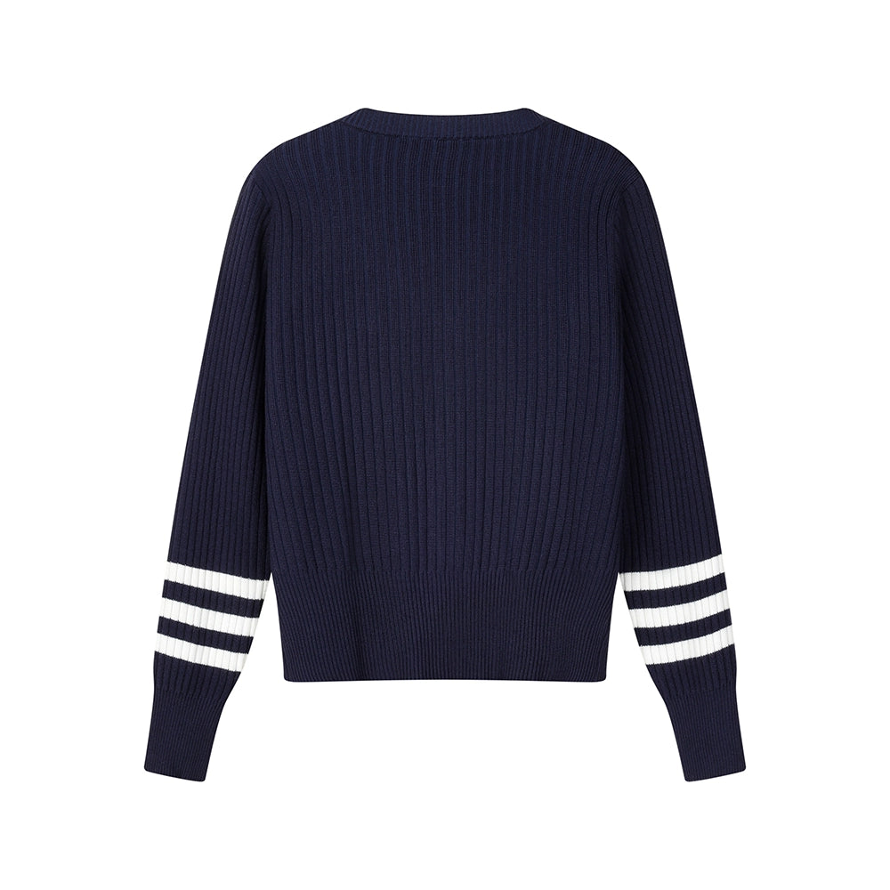 Suéter de Tricô Estilo Universitário com Abotoamento Duplo