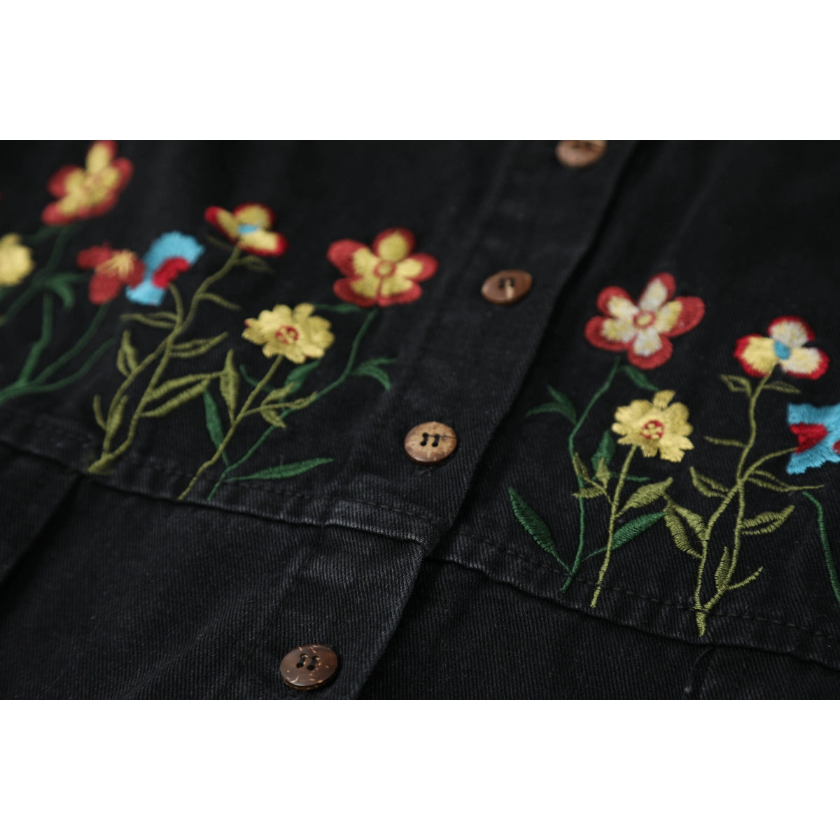 Vestido Midi de Alças com Botões em Denim Bordado