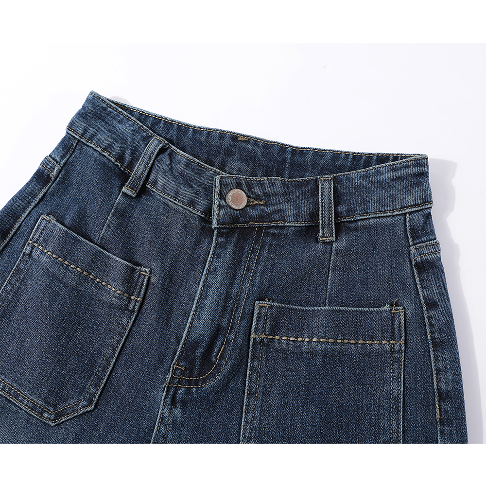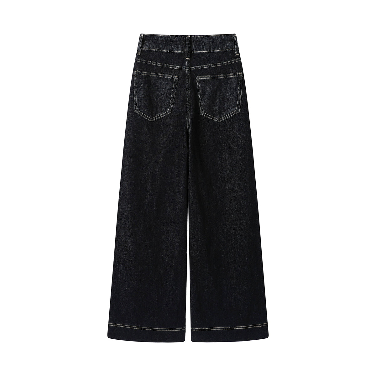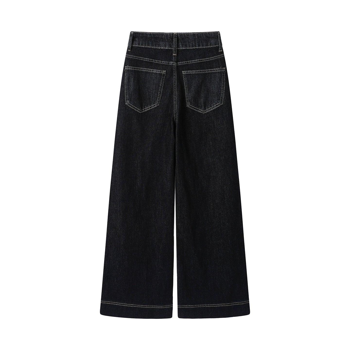 Calças Jeans de Cintura Alta e Perna Larga Retro