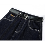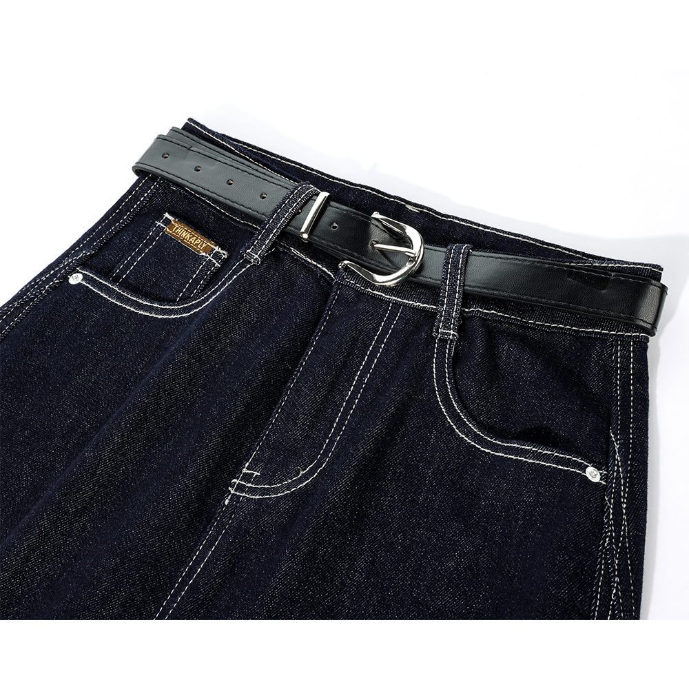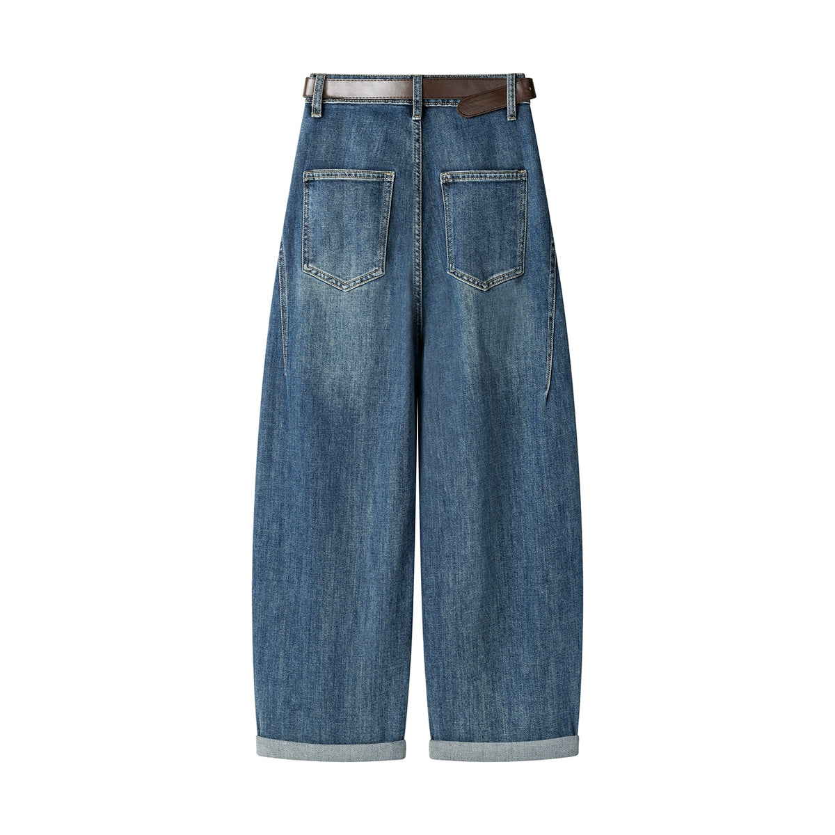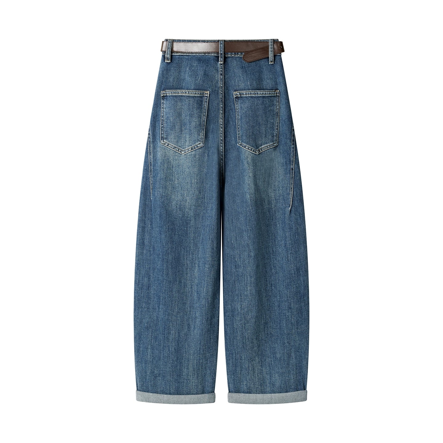 Calças Jeans Casuais de Perna Larga com Barra Dobrada