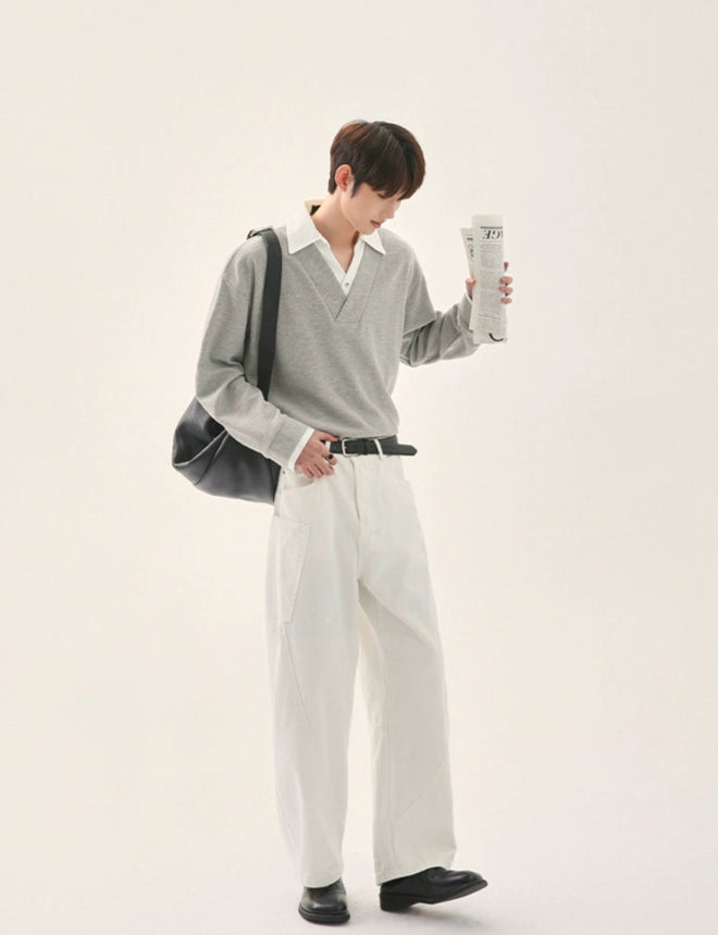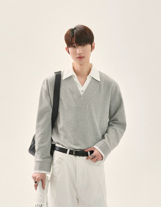 Pulôver de Manga Longa com Colarinho de Waffle e Recorte