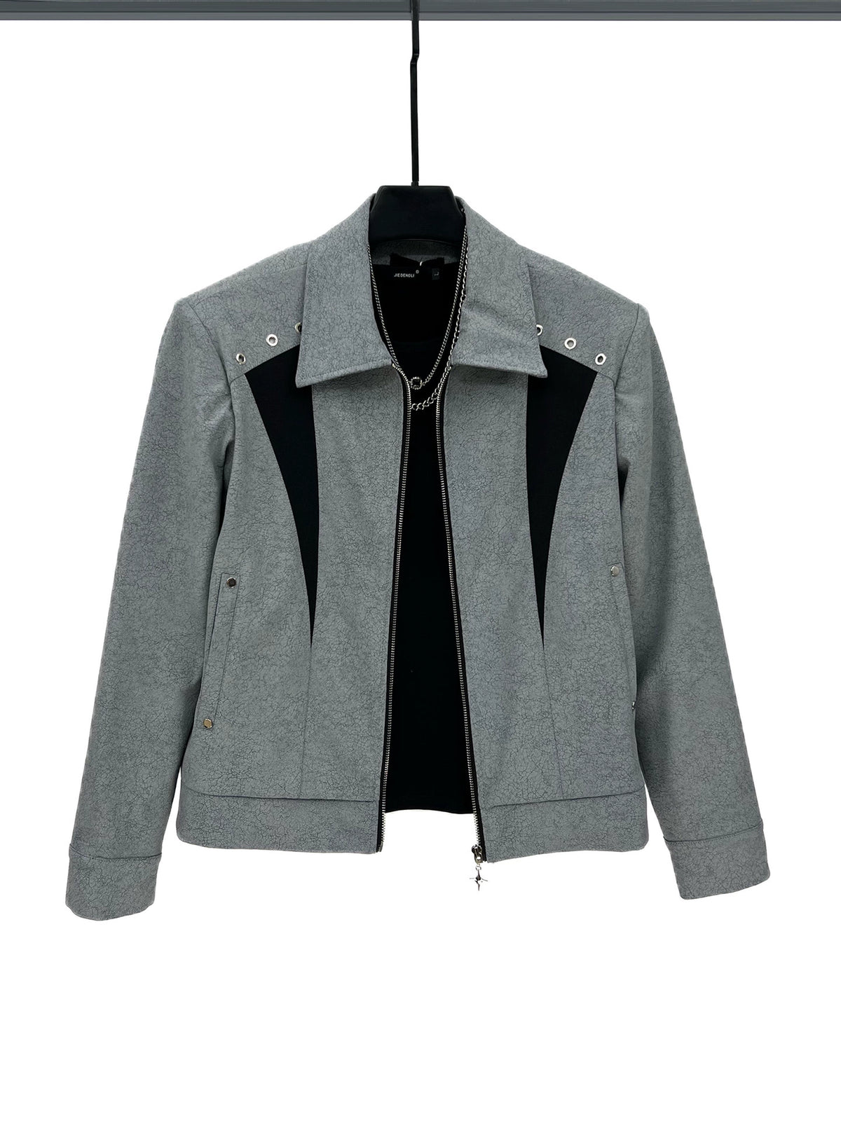 Conjunto de Jaqueta de Couro Patchwork e Calças