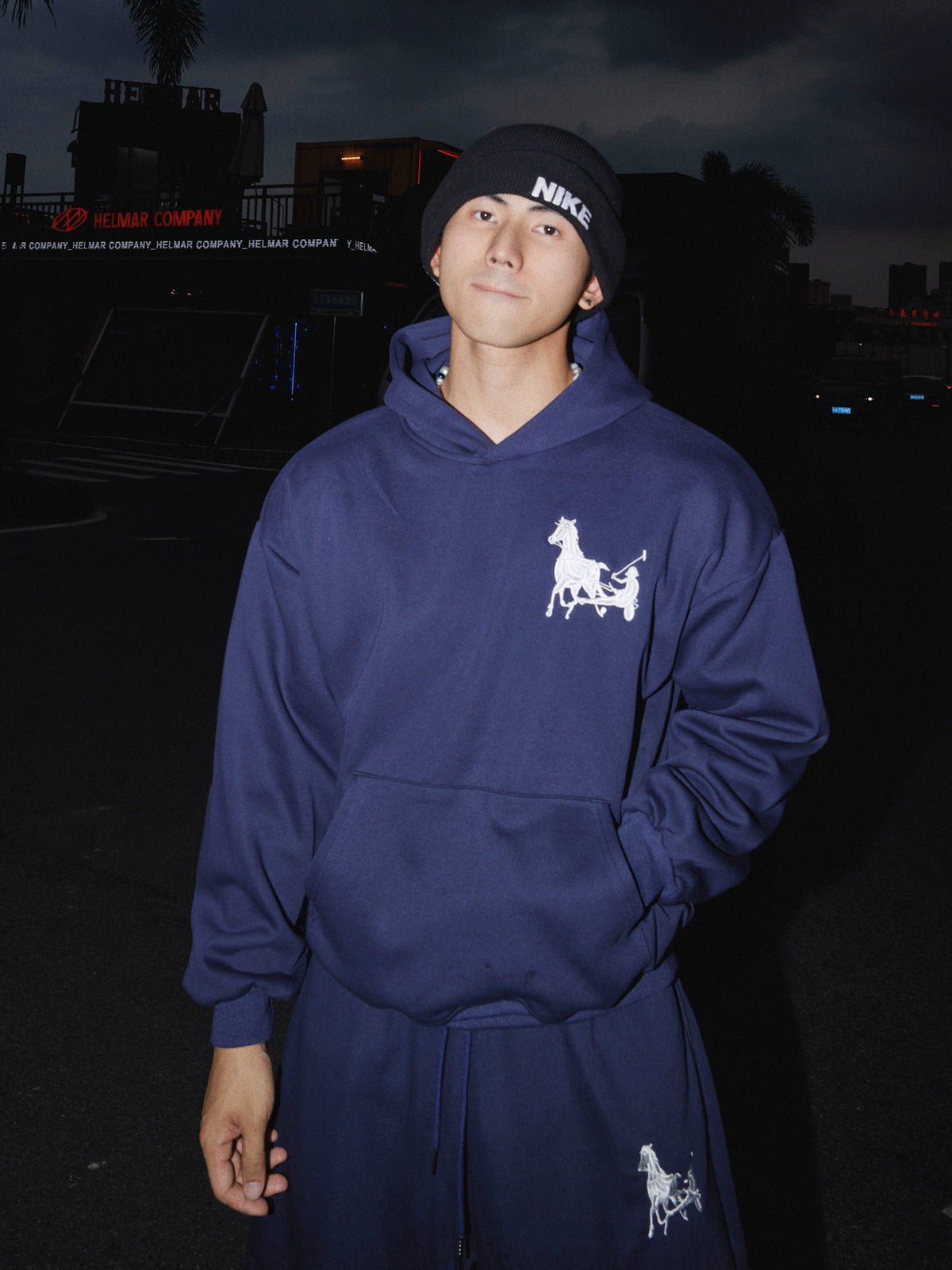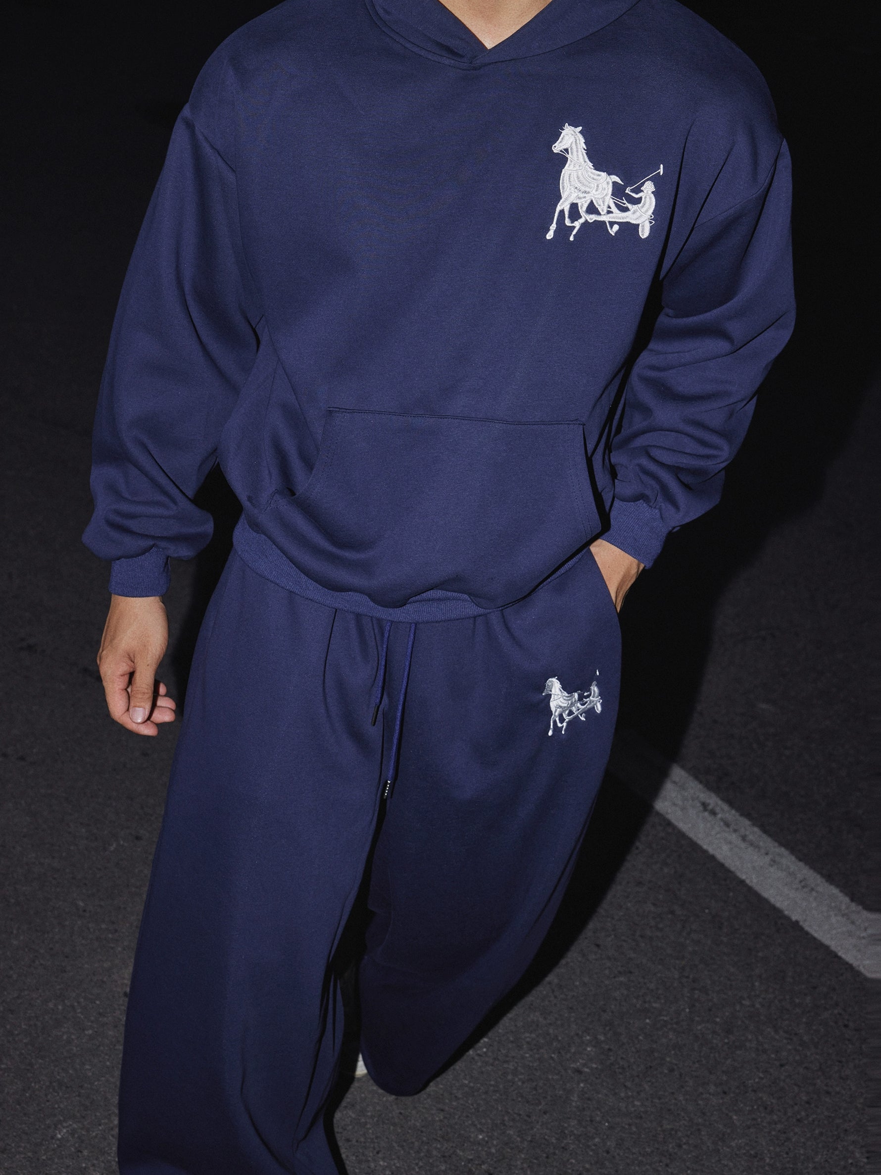 Conjunto de Moletom com Capuz e Calças com Bordado de Cavalo